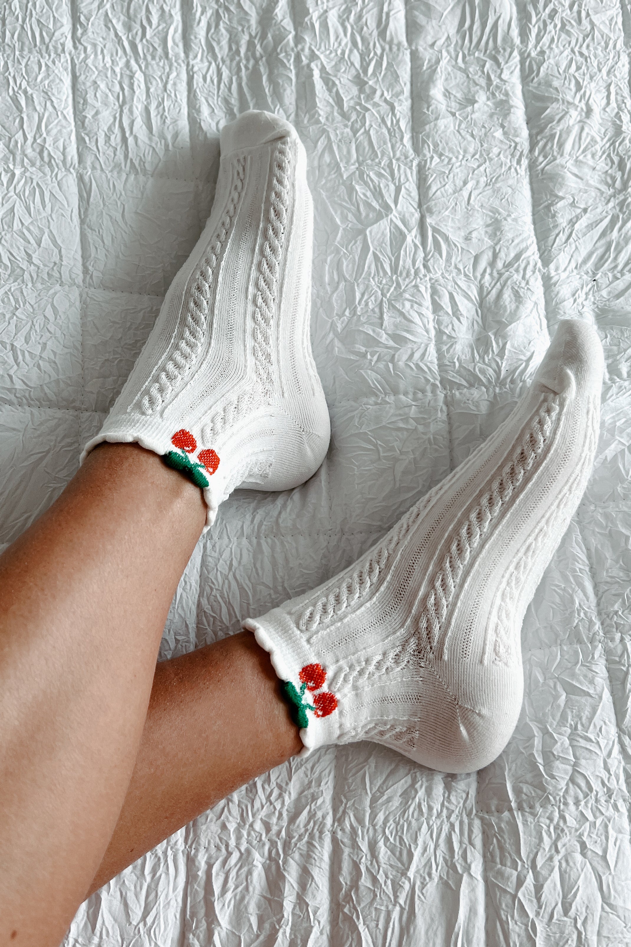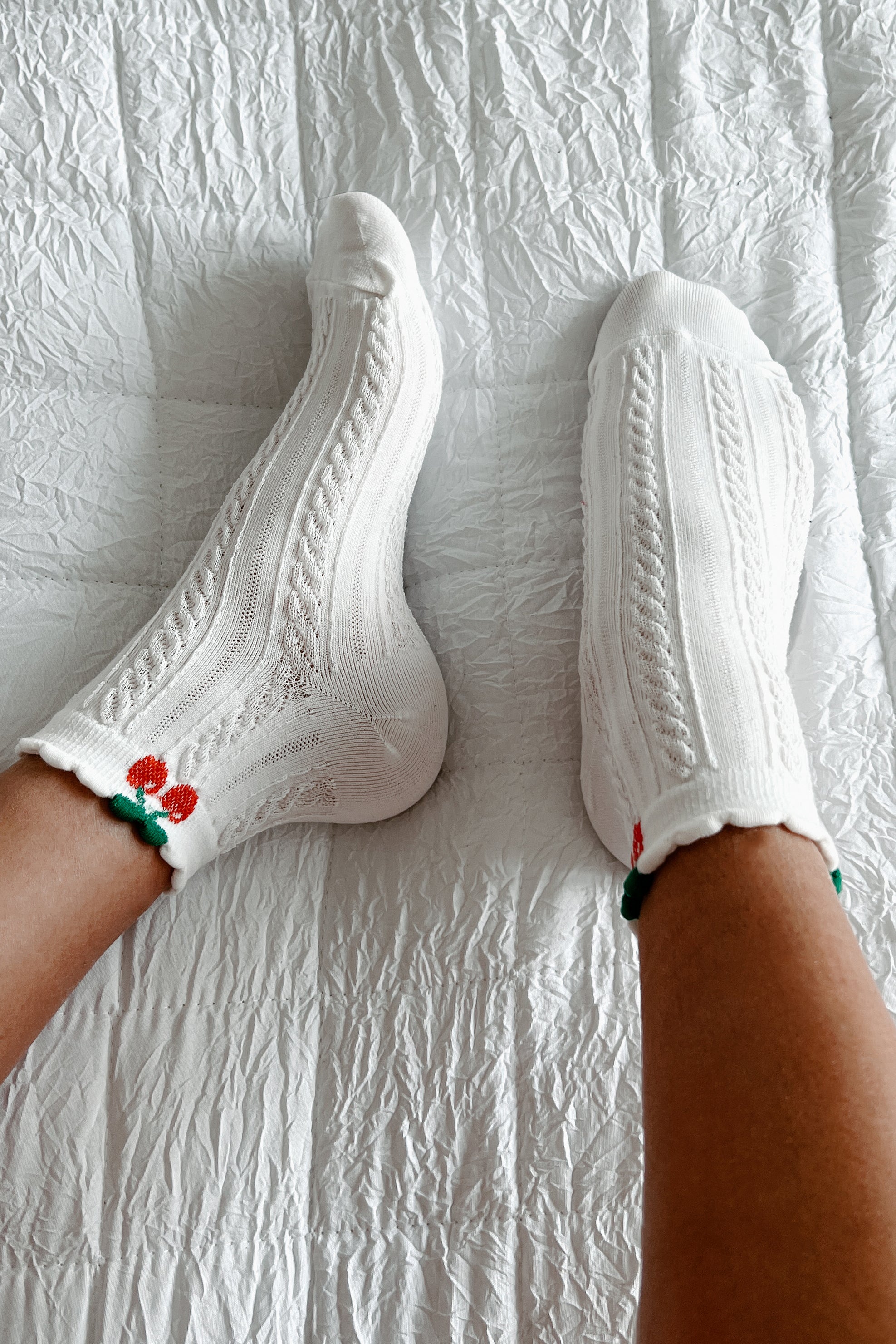 Maraschino Mood Cherry Ankle Socks (White) - NanaMacs