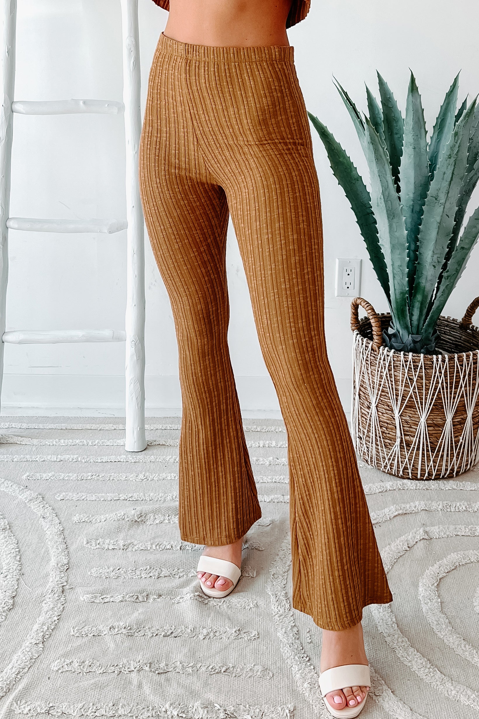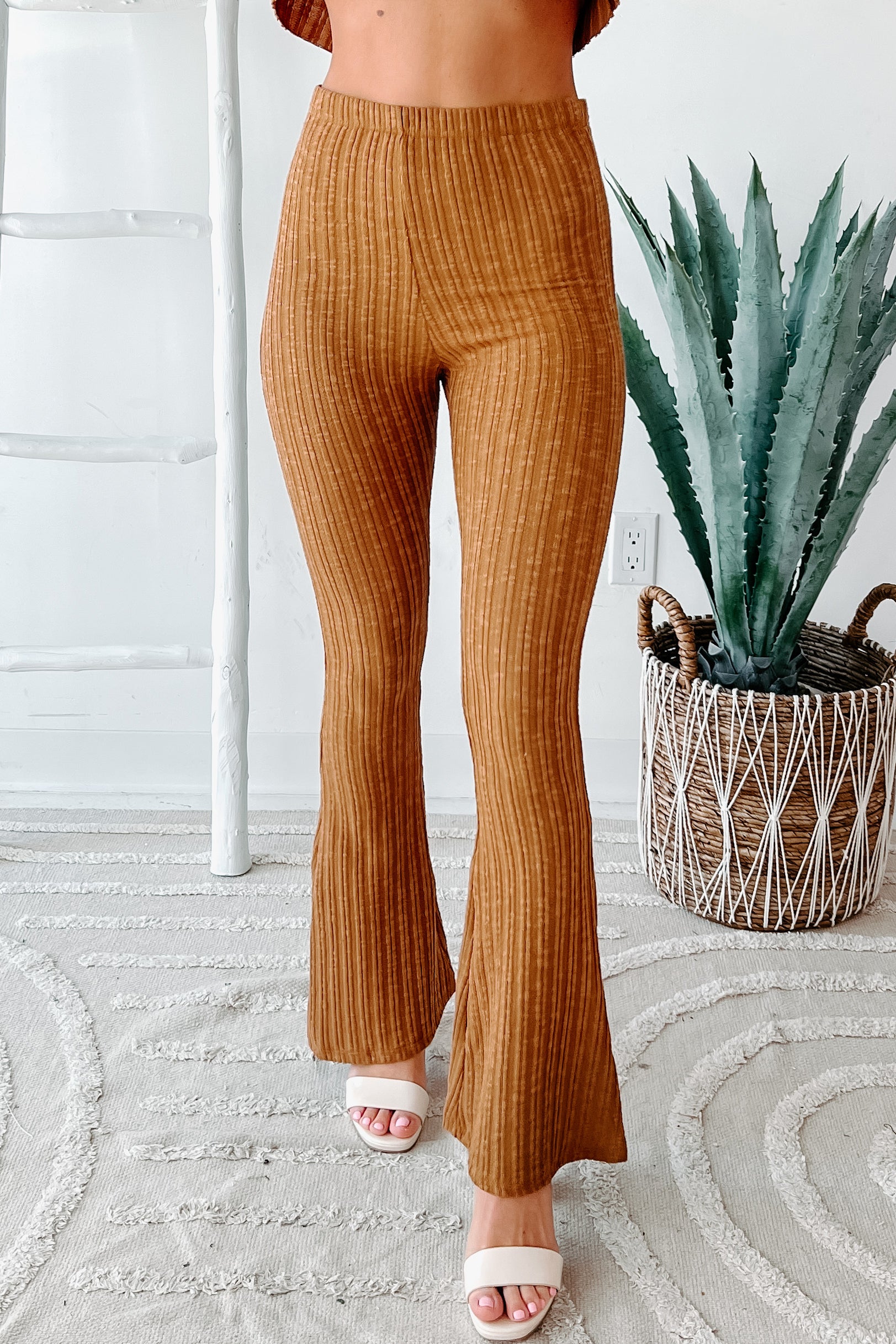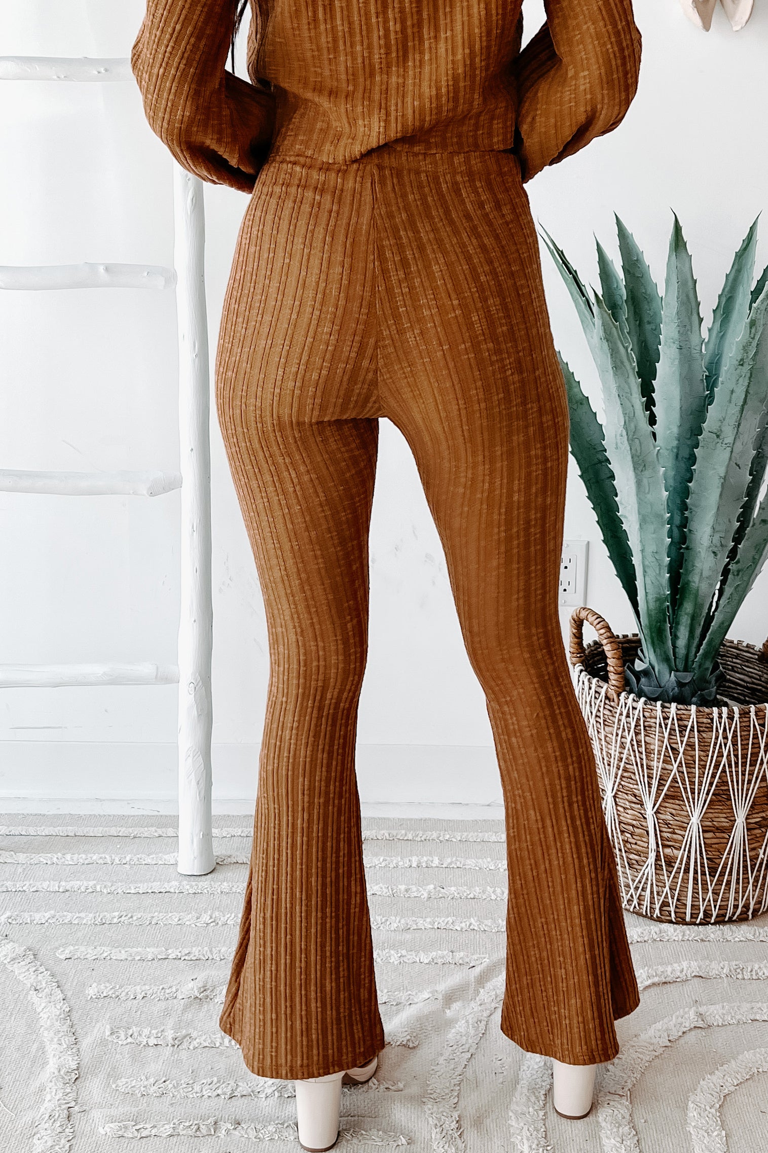 These Camel, Ribbed Knit, Flare Pants Are Comfy And Perfect For A Cozy, Casual Look!