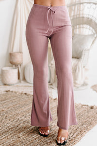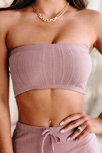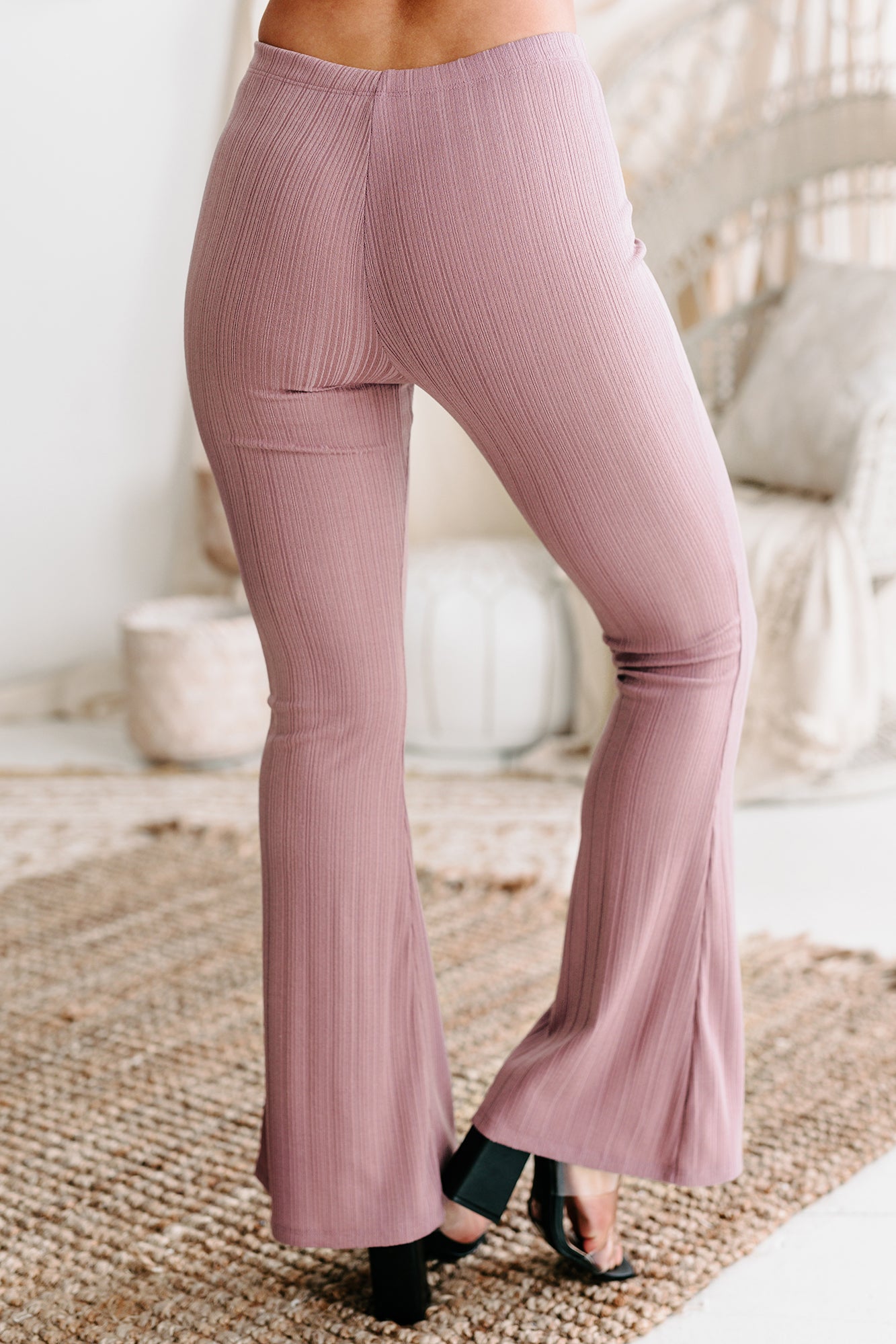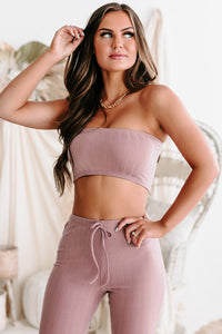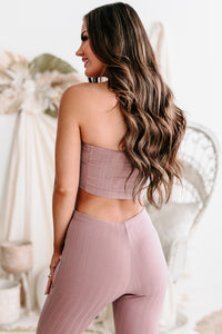 It's Easy To Look Cute When You Wear This Orchid, Ribbed, Tube Top & Bootcut Pants Set!