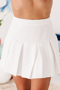 Match Point Pleated Mini Skirt (Ivory) - NanaMacs