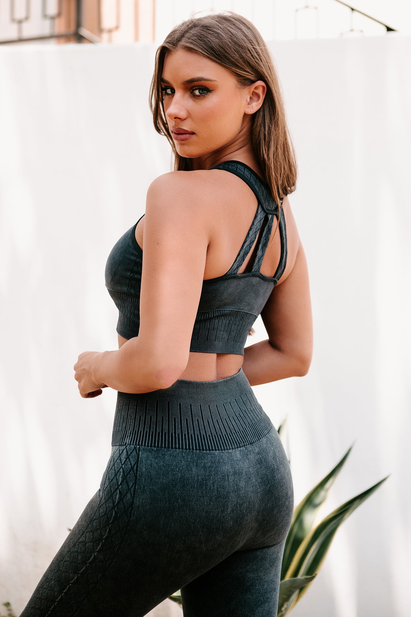 Matrix Tri-Strap Mineral Wash Sports Bra (Black) - NanaMacs