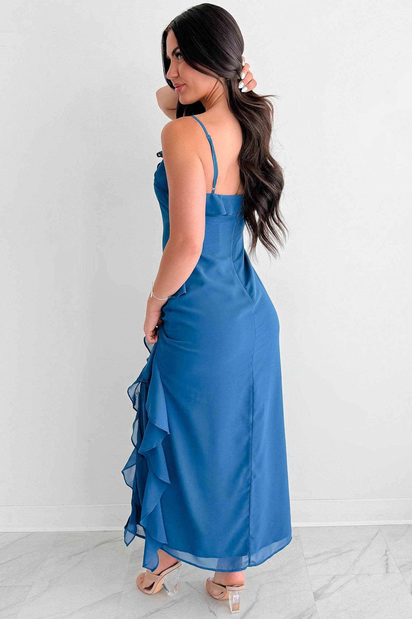 Matte Intentions Ruffle High-Low Dress (Teal Blue)