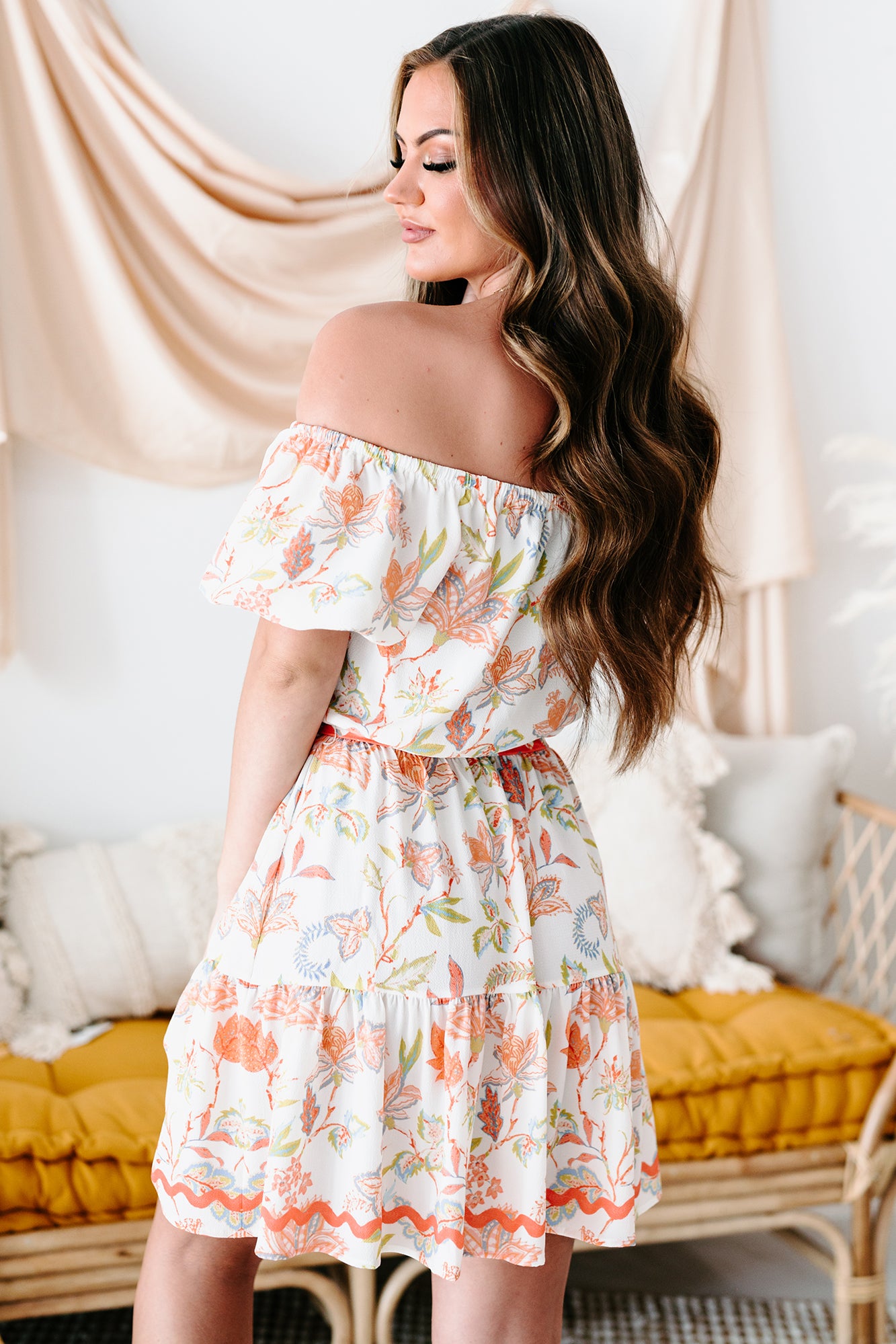 Meeting For Brunch Floral Off The Shoulder Dress (Ivory)