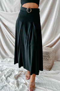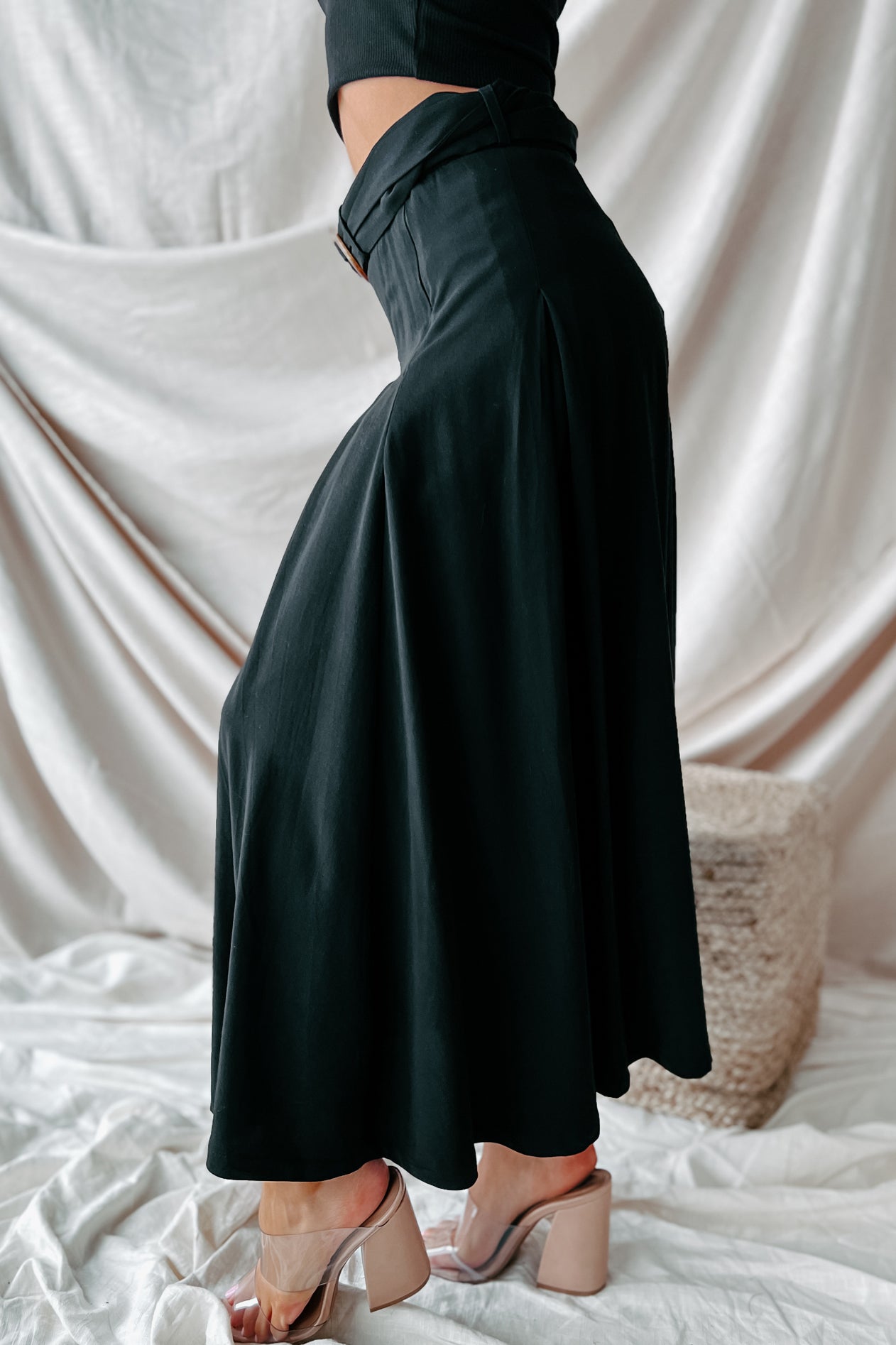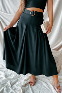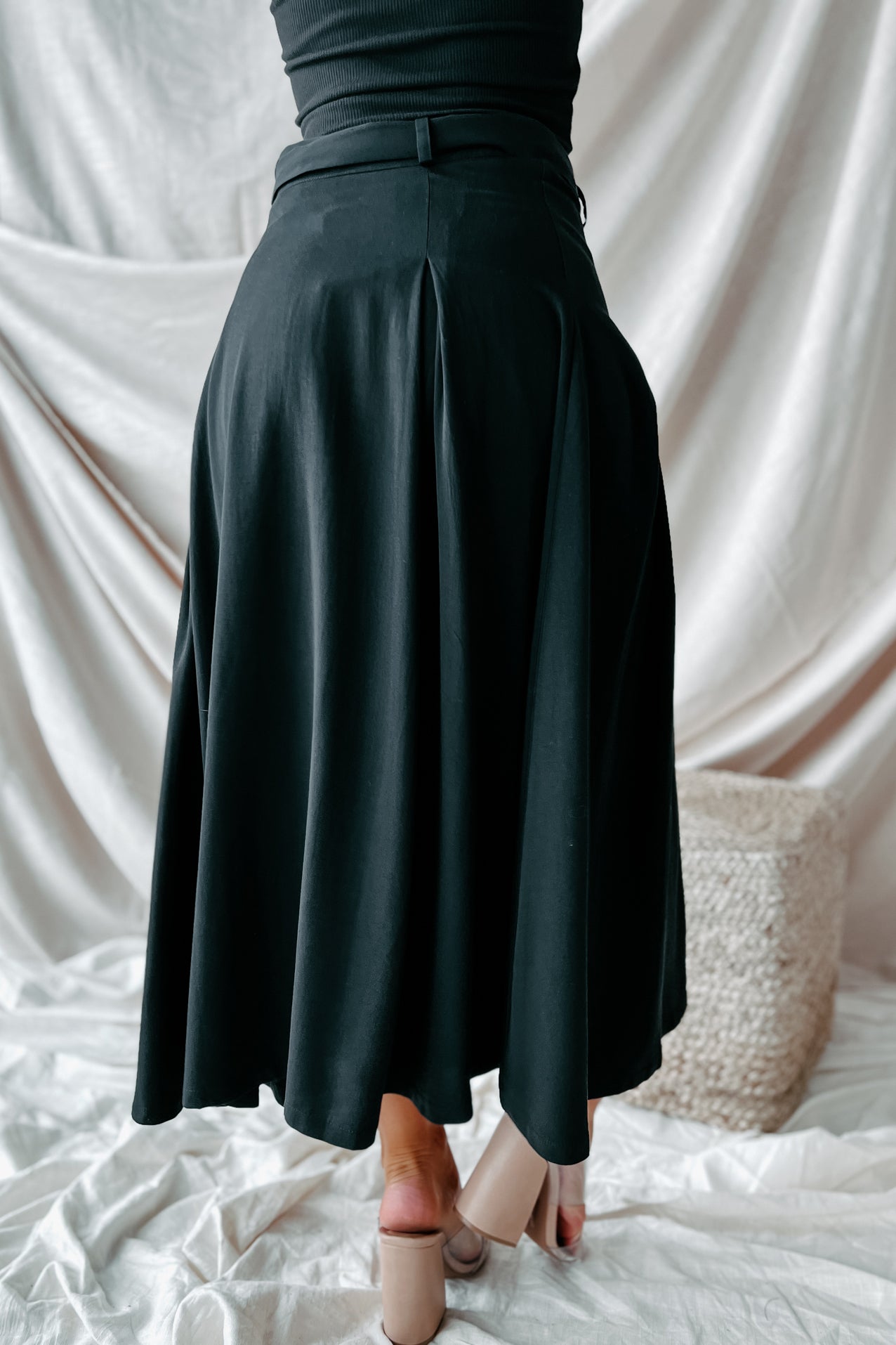 Sometimes You're Just Not In A Pants Mood. Snag This Black, Belted Midi Skirt For Those Days!