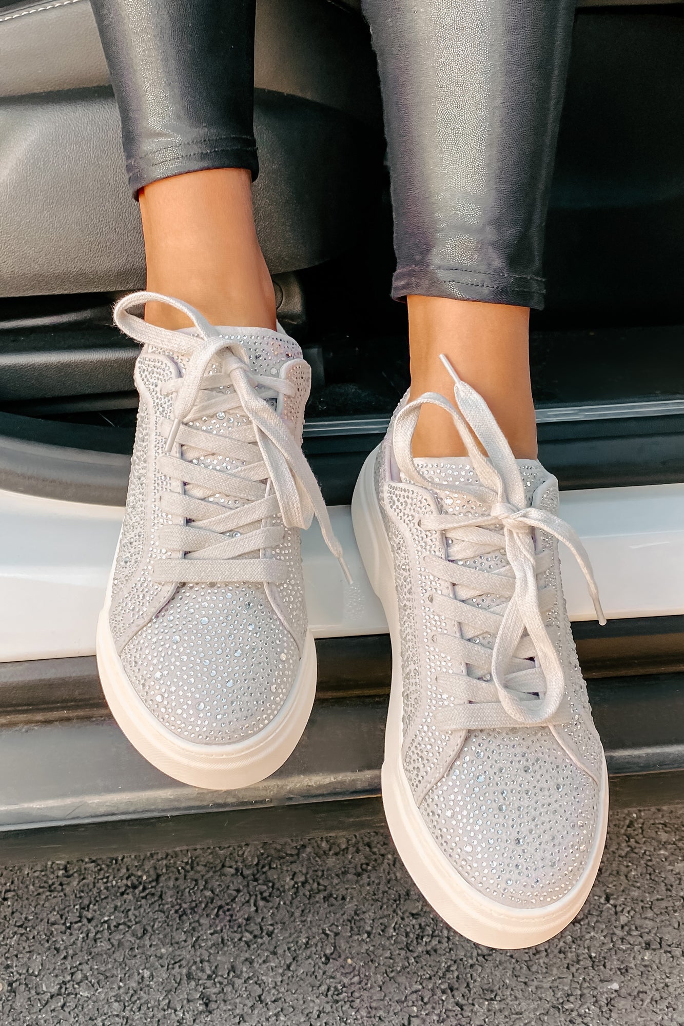 Take Your Outfit From 0 To 100 With These Gorgeous, Grey Rhinestone Sneakers!