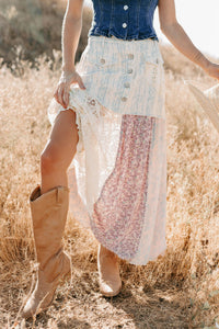 Moonlit Path Patchwork Maxi POL Skirt (Blue/Multi)