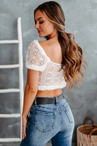 Most Likely To Crush Padded Lace Crop Top (Off White) - NanaMacs