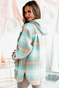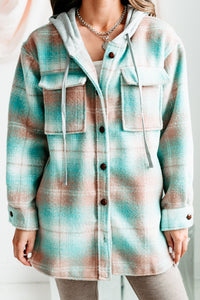 Mountain Retreat Hooded Plaid Shacket (Teal/Sand)