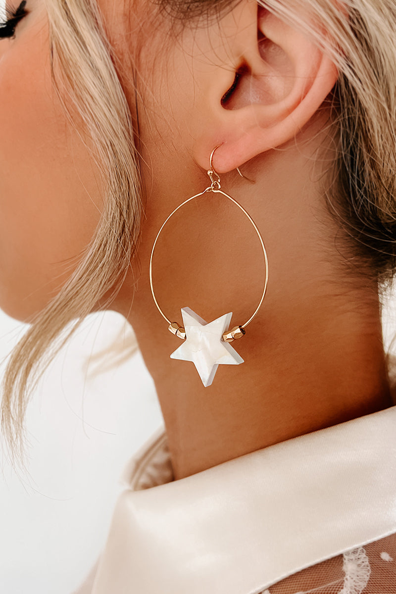 My Lucky Star Hoop Earrings (Gold/White)