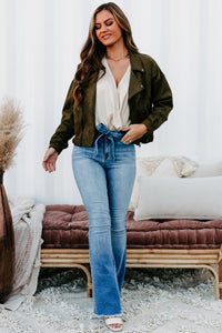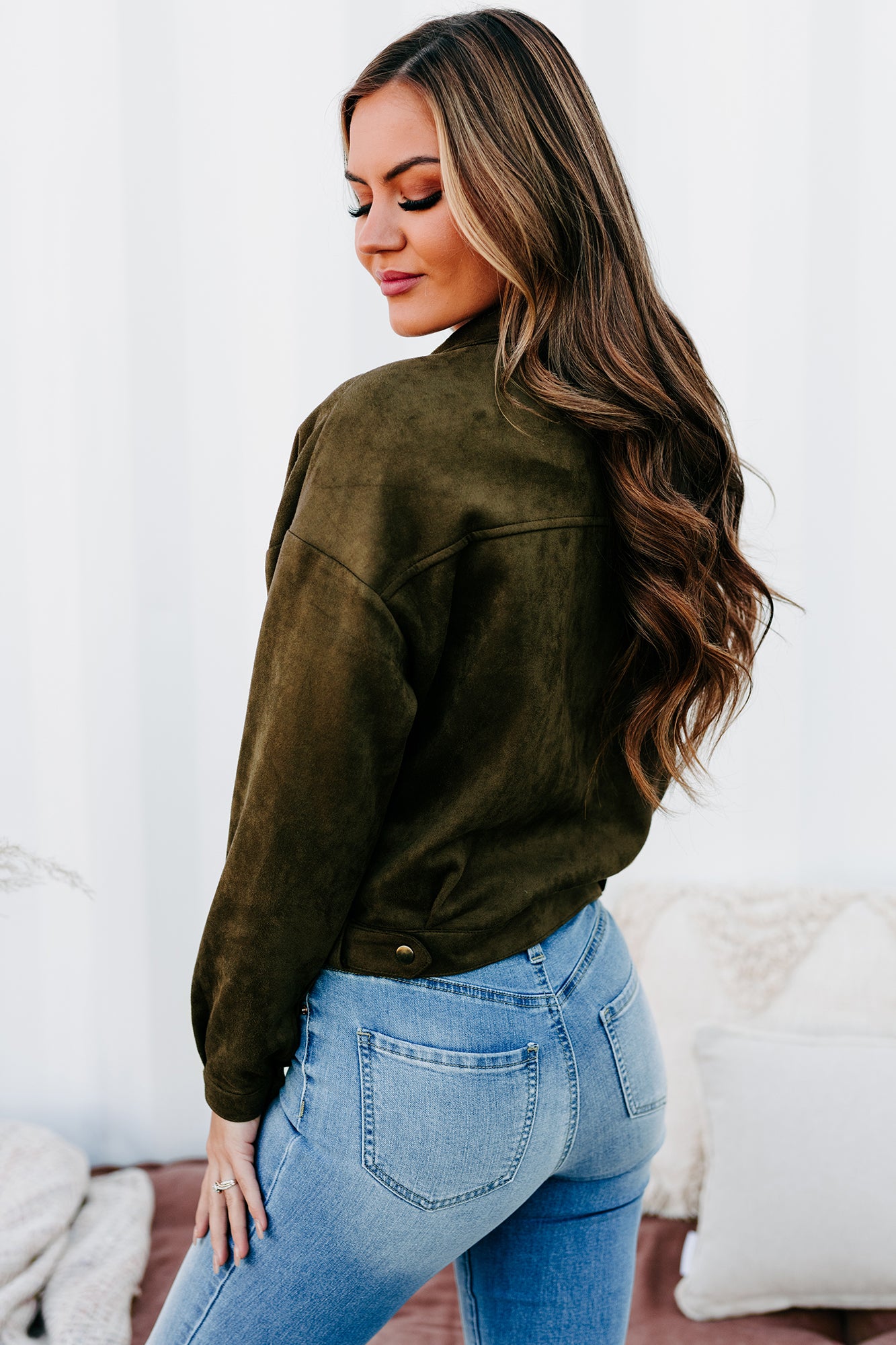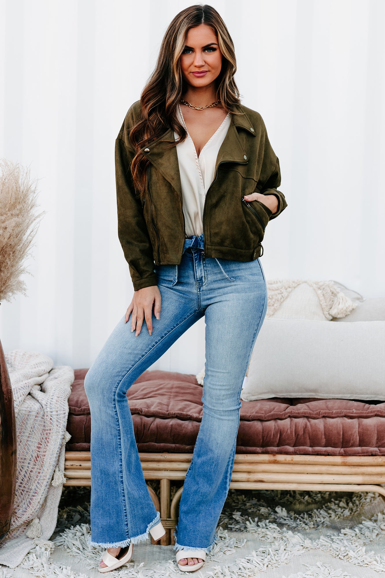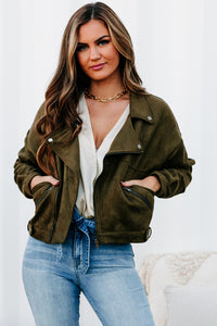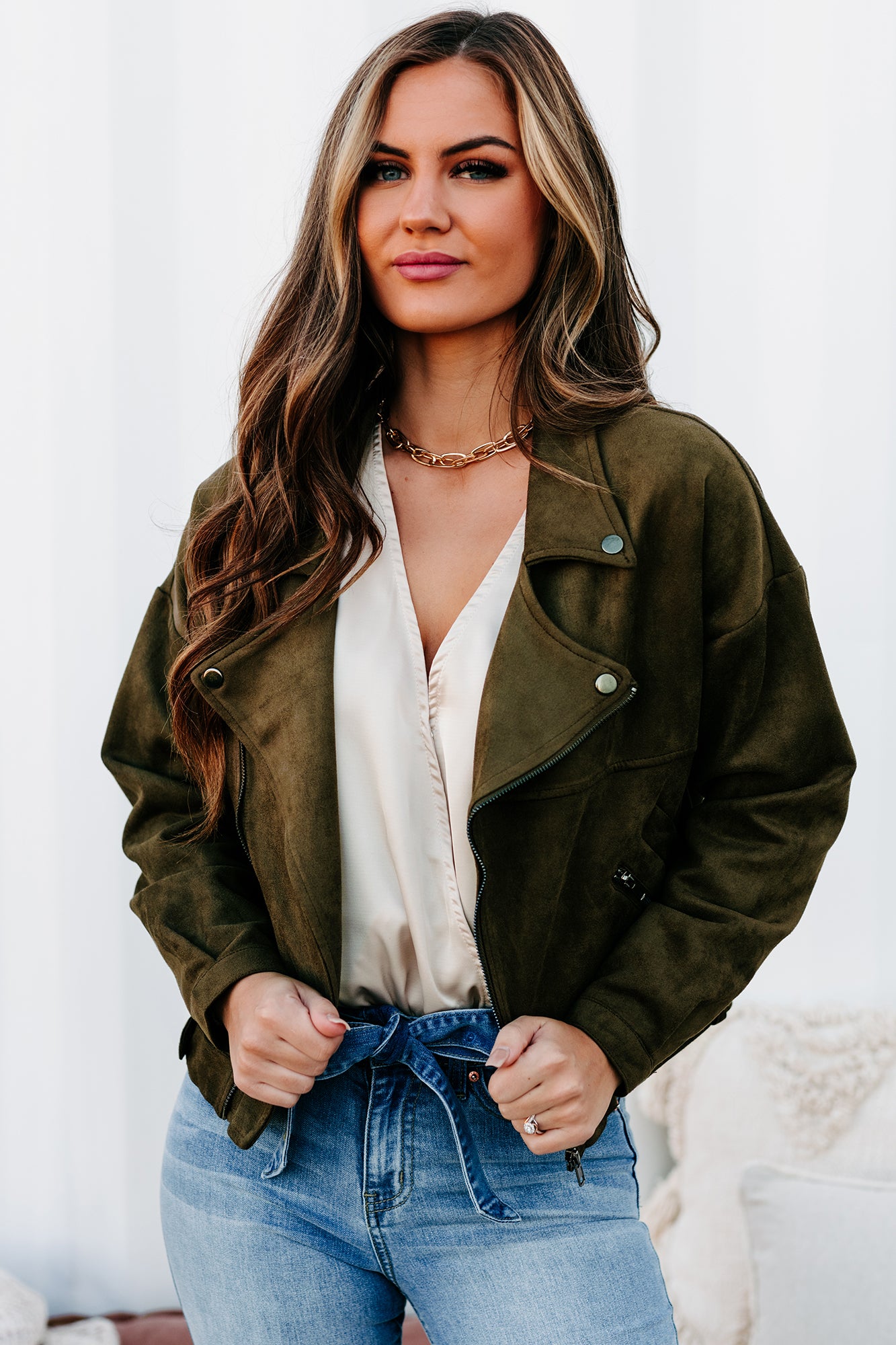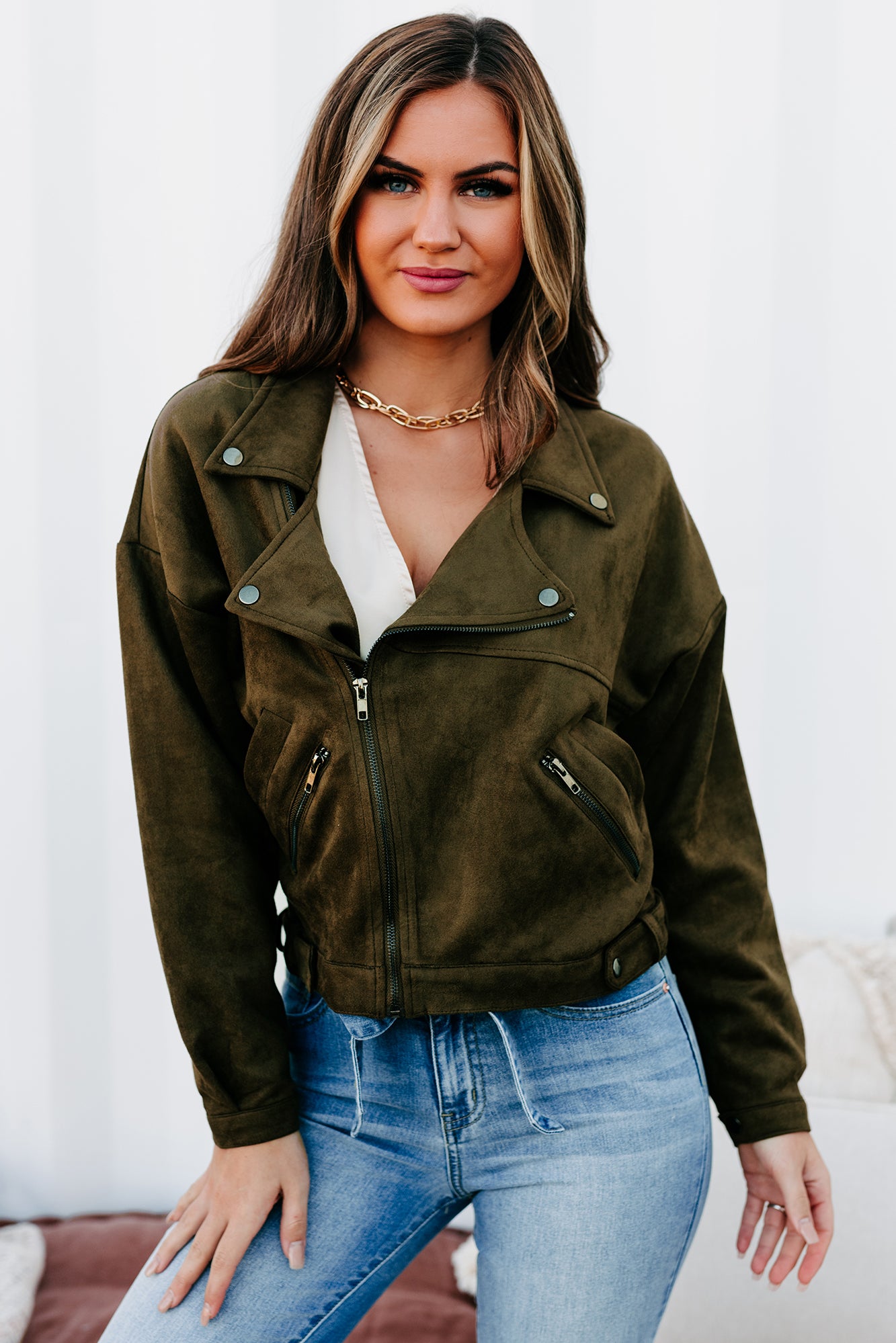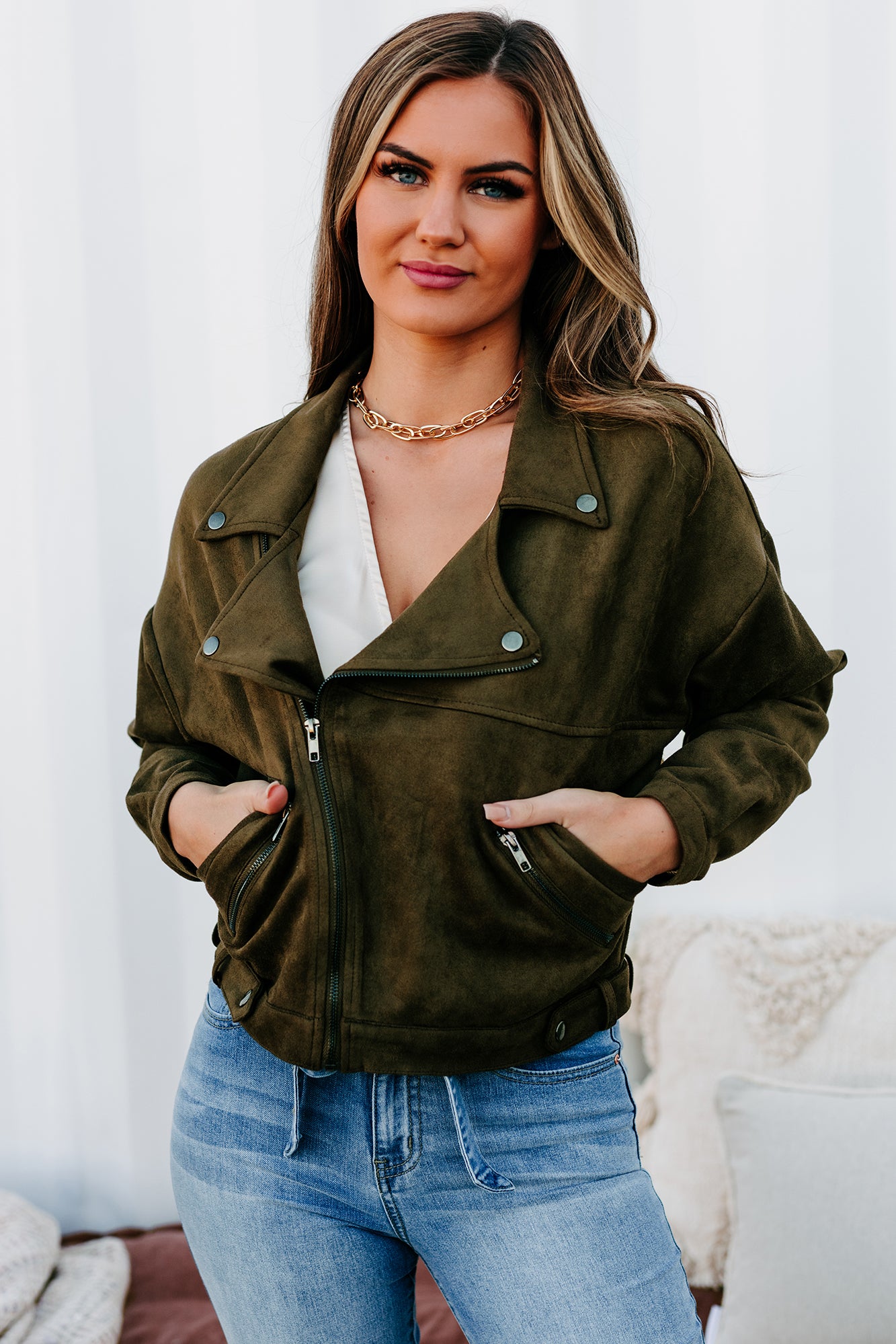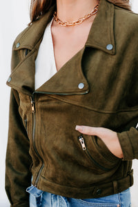 My Ride Or Die Faux Suede Moto Jacket (Olive)