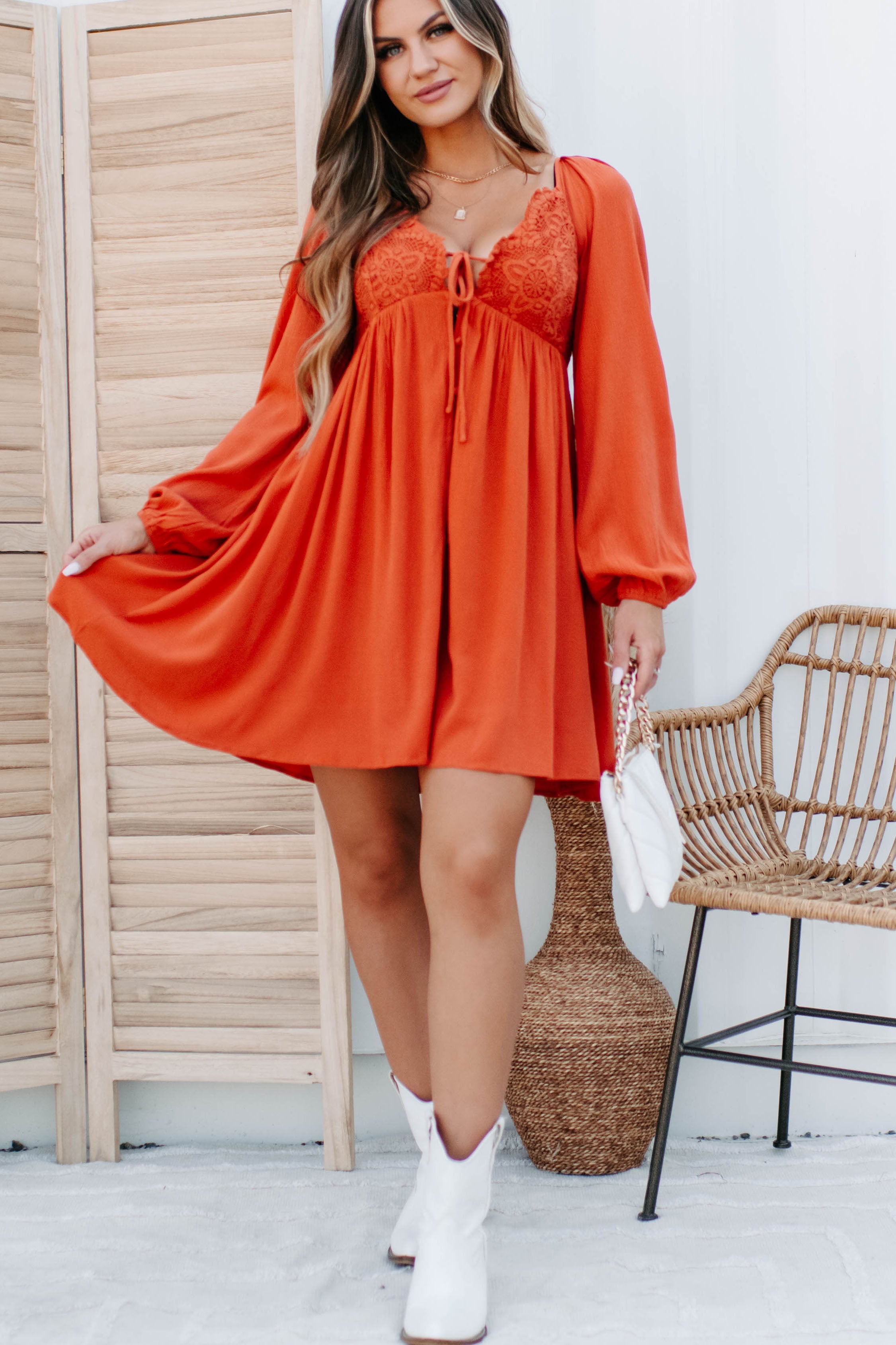 Needing Time & Space Lace Detailed Babydoll Dress (Orange)
