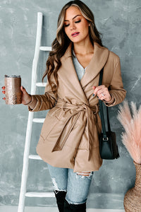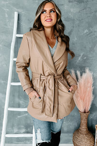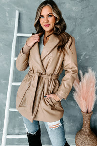 Never Average Belted Faux Leather Coat (Tan) - NanaMacs
