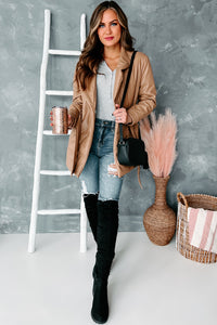 This Tan, Faux Leather Coat Will Pair Well Over Anything And Everything You Wear!