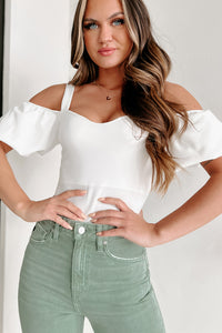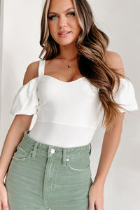 New Love Interest Cold Shoulder Bodysuit (White) - NanaMacs
