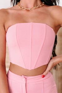 Nightlife Necessity Cropped Corset & Flared Pants Set (Pink)