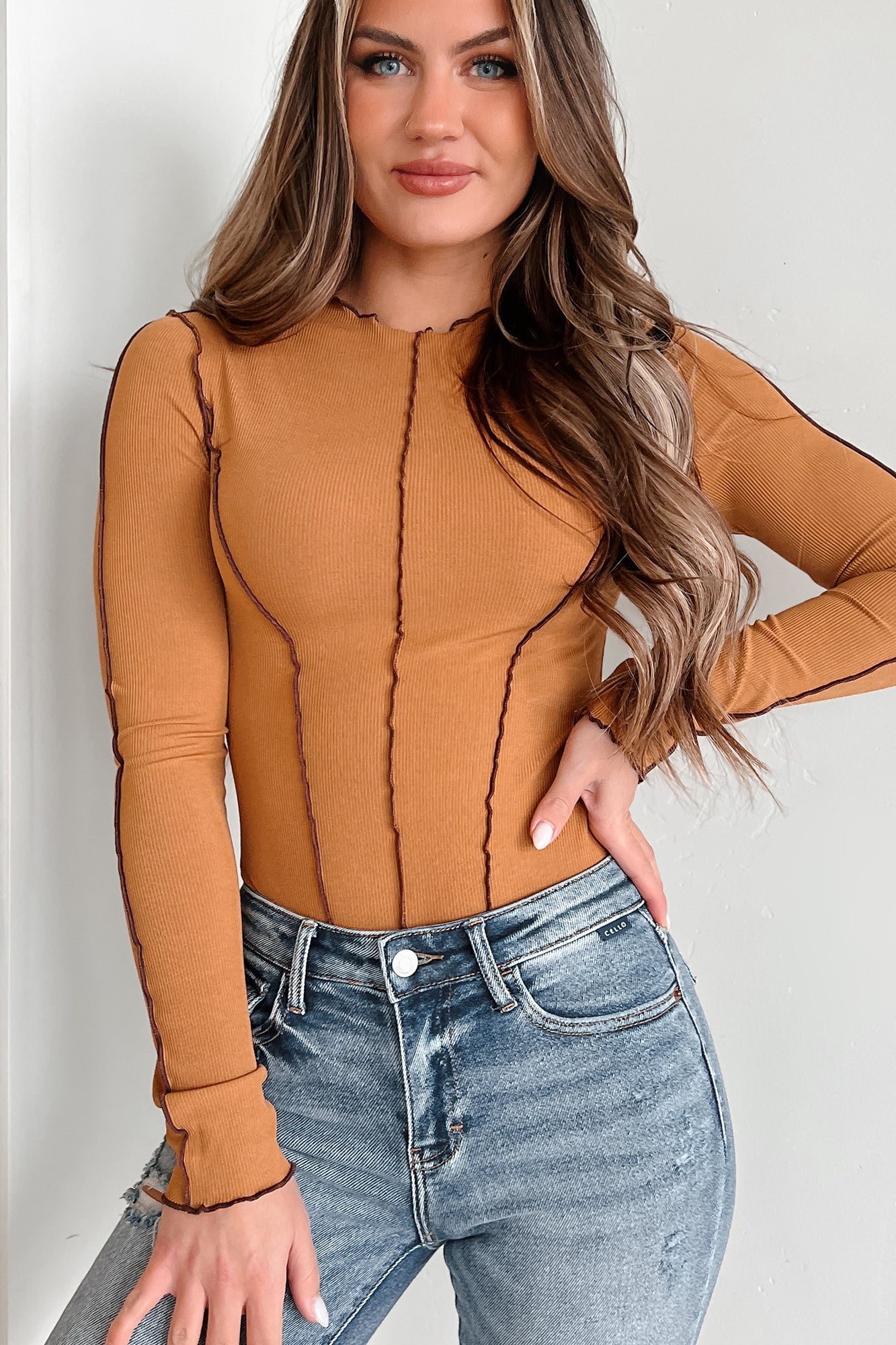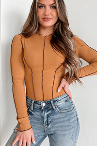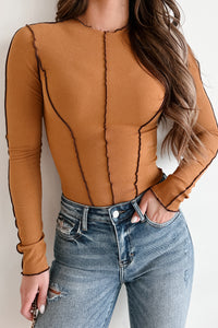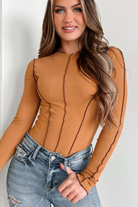 No Drama Here Mock Neck Bodysuit (Camel) - NanaMacs