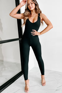 No Extra Baggage Ribbed Catsuit (Black) - NanaMacs