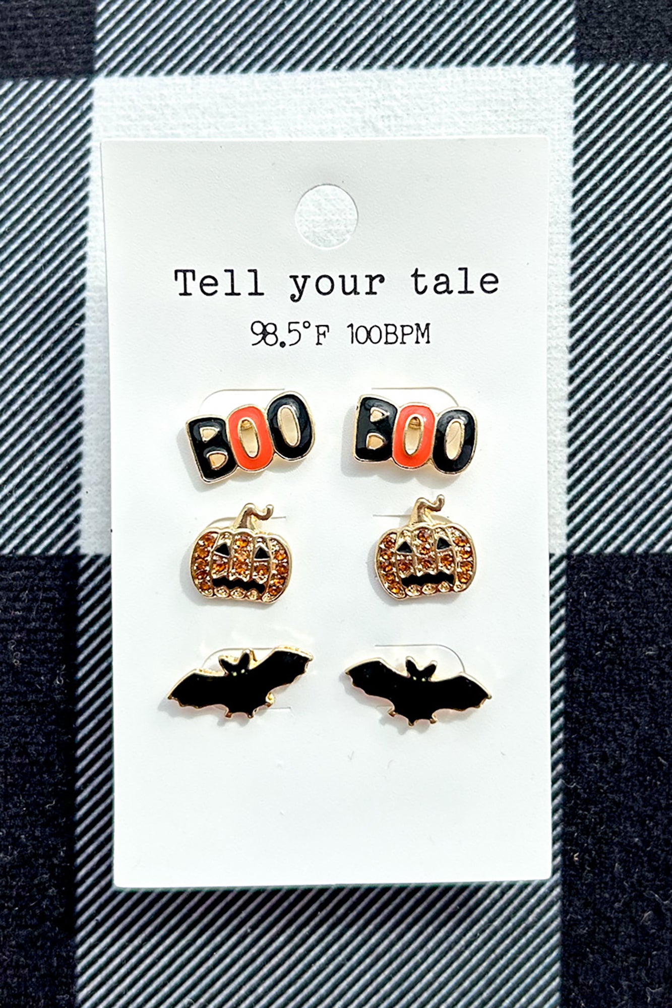 No Tricks, Just Treats Halloween Theme Earring 3-Pack (Gold) - NanaMacs