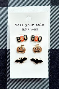 No Tricks, Just Treats Halloween Theme Earring 3-Pack (Gold)