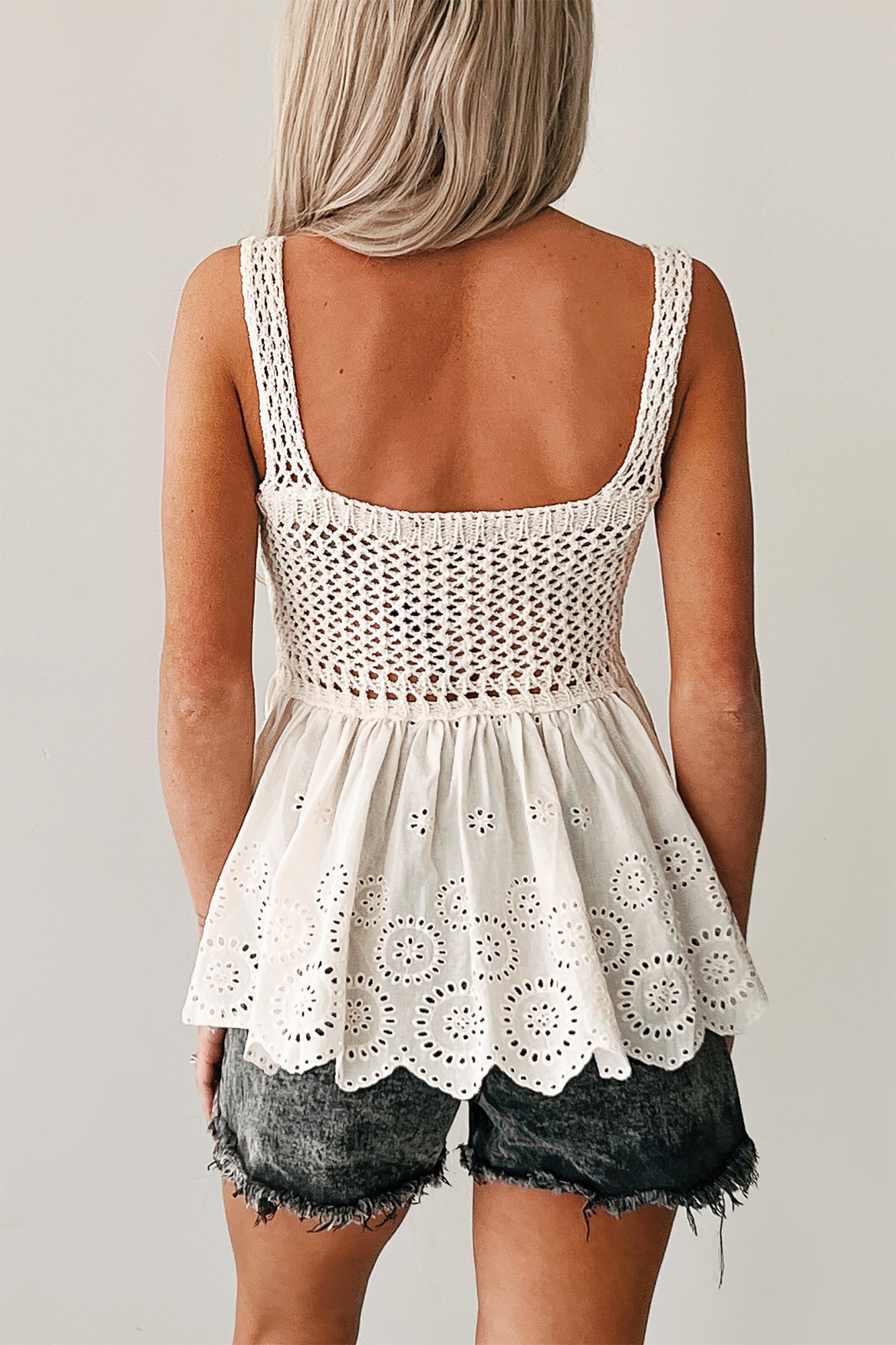 Oceanside Opal Eyelet Crochet Tank Top (Cream)