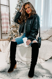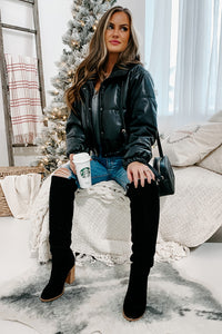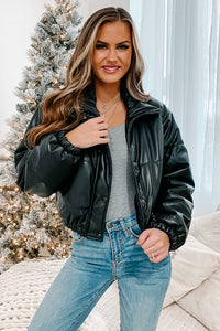On The Edge Faux Leather Puffer Coat (Black) - NanaMacs