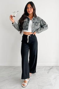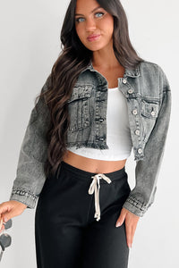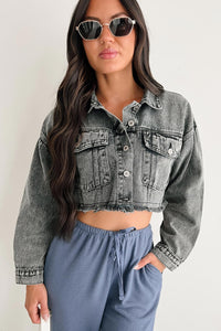 On The Loose Washed Denim Crop Jacket (Black) - NanaMacs