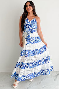 Only Ever You Eyelet Lace Tiered Maxi Dress (Blue)