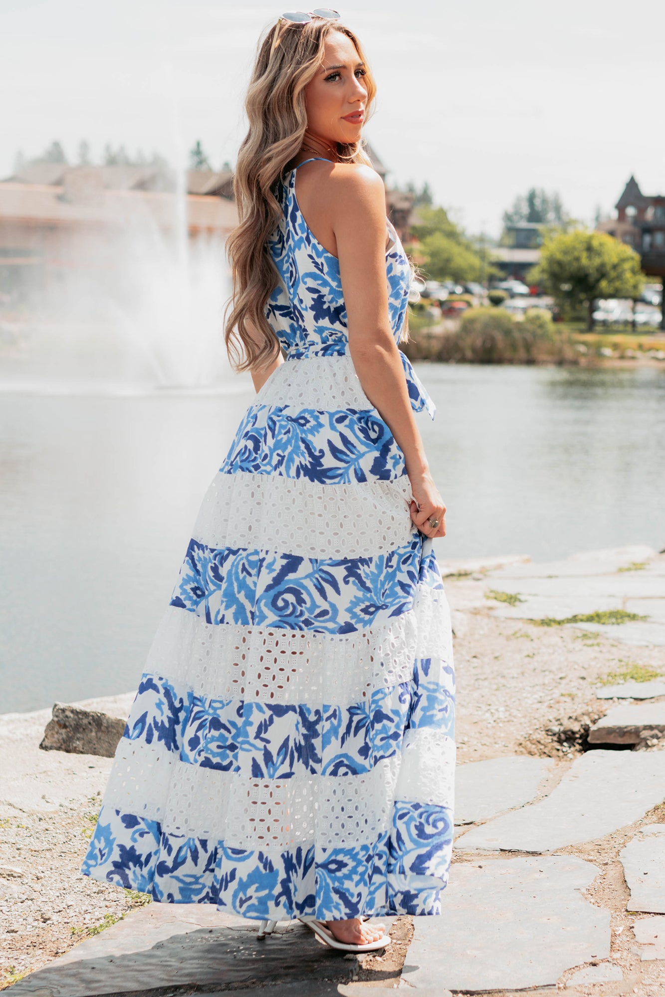 Only Ever You Eyelet Lace Tiered Maxi Dress (Blue) - NanaMacs