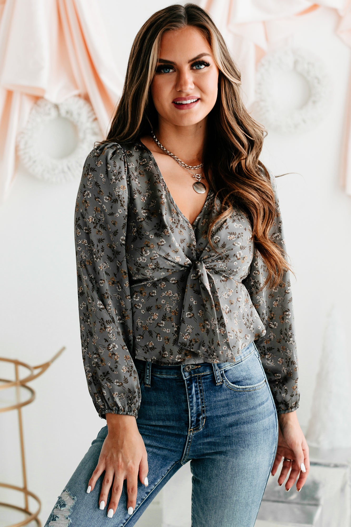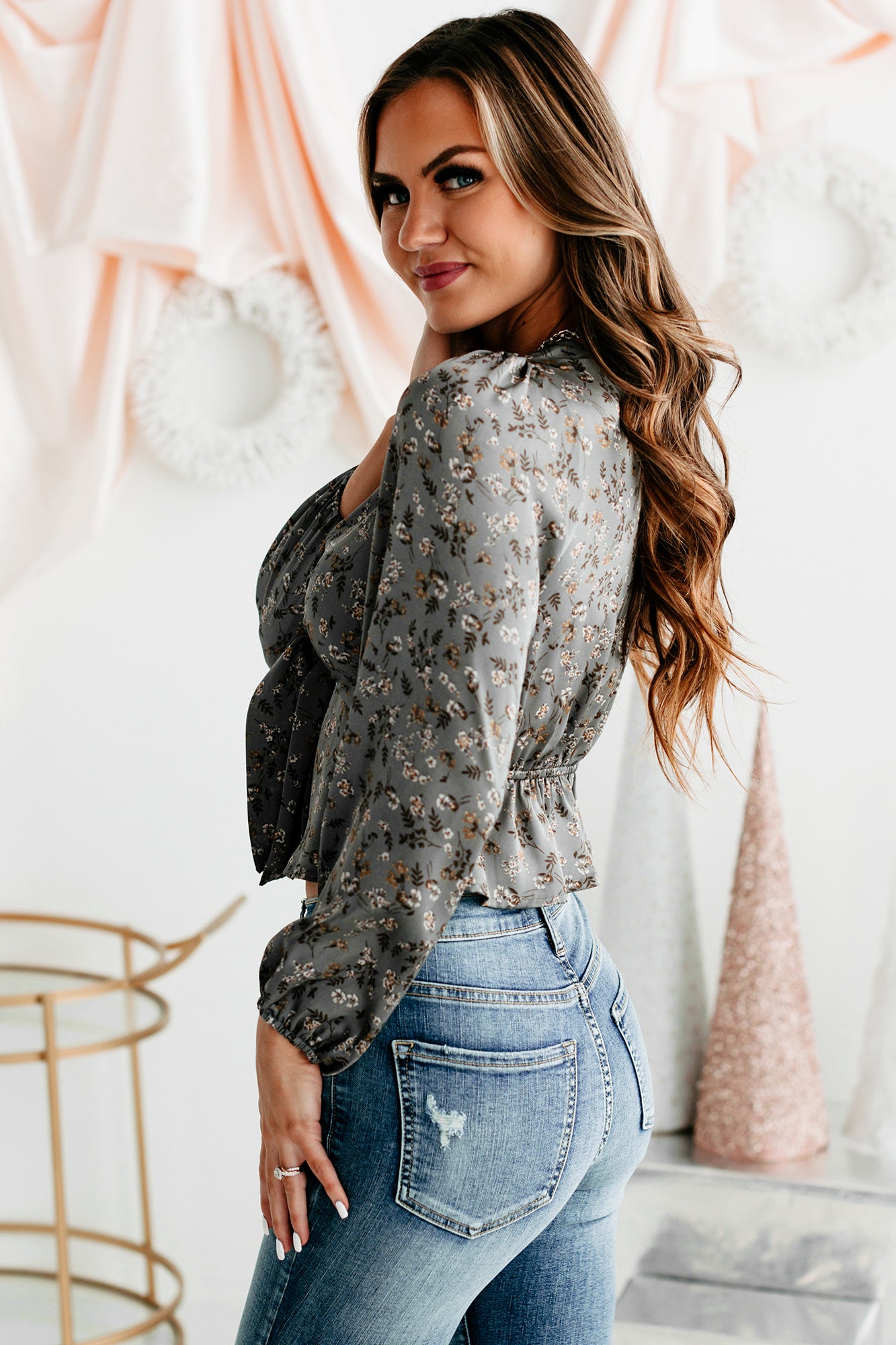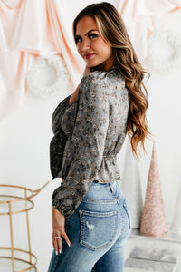Opportunity For Growth Satin Floral Crop Top (Grey) - NanaMacs