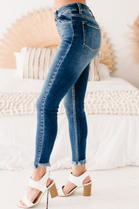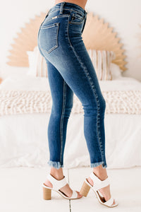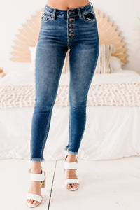 Original Ideas Button-Down Frayed Hem Skinny Kancan Jeans (Dark) - NanaMacs