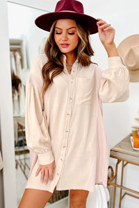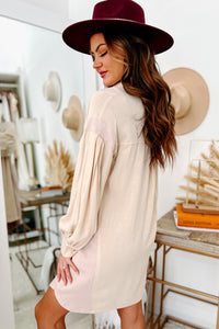 Out Of Reach Mix Media Button Up Shirt Dress (Sand) - NanaMacs