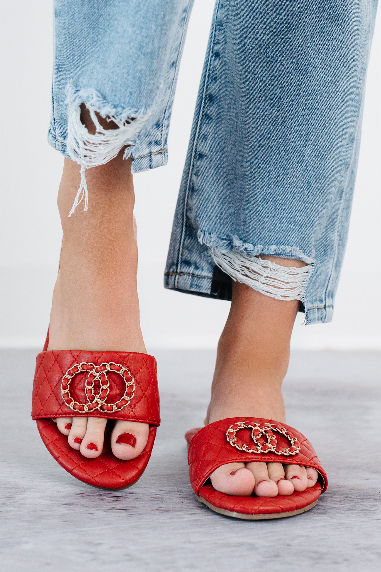 Own Your Elegance Quilted Leather Sandals (Red) - NanaMacs