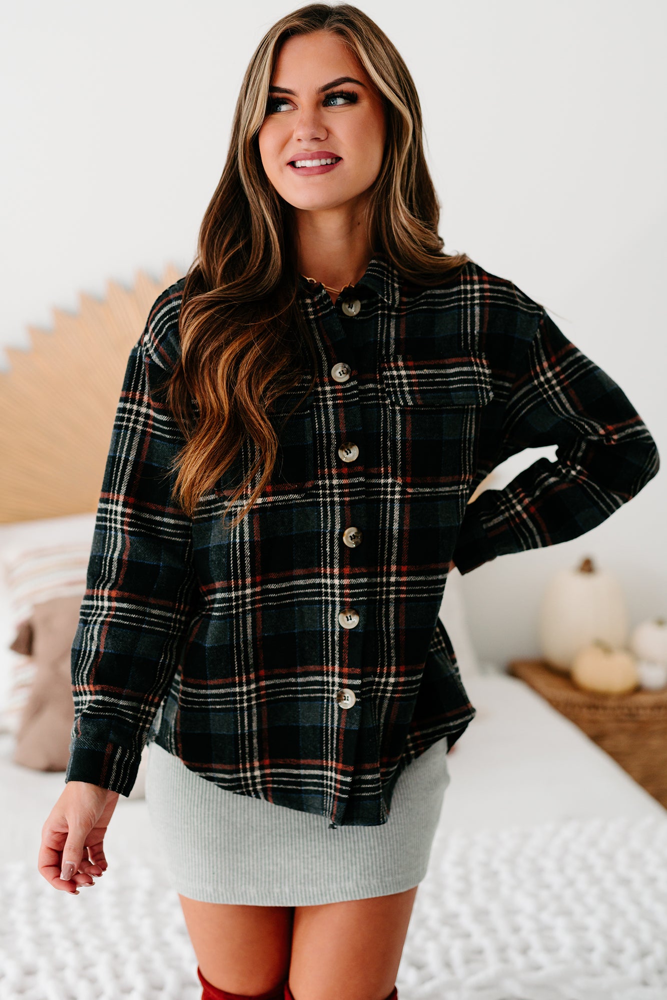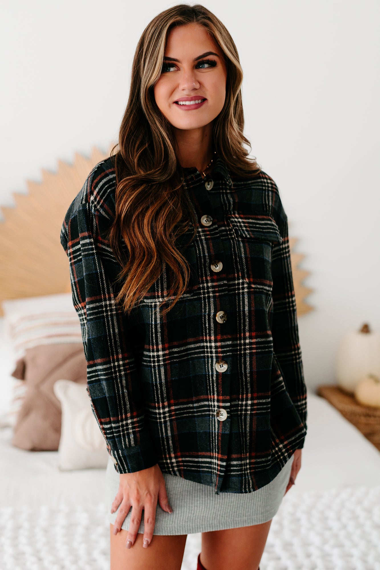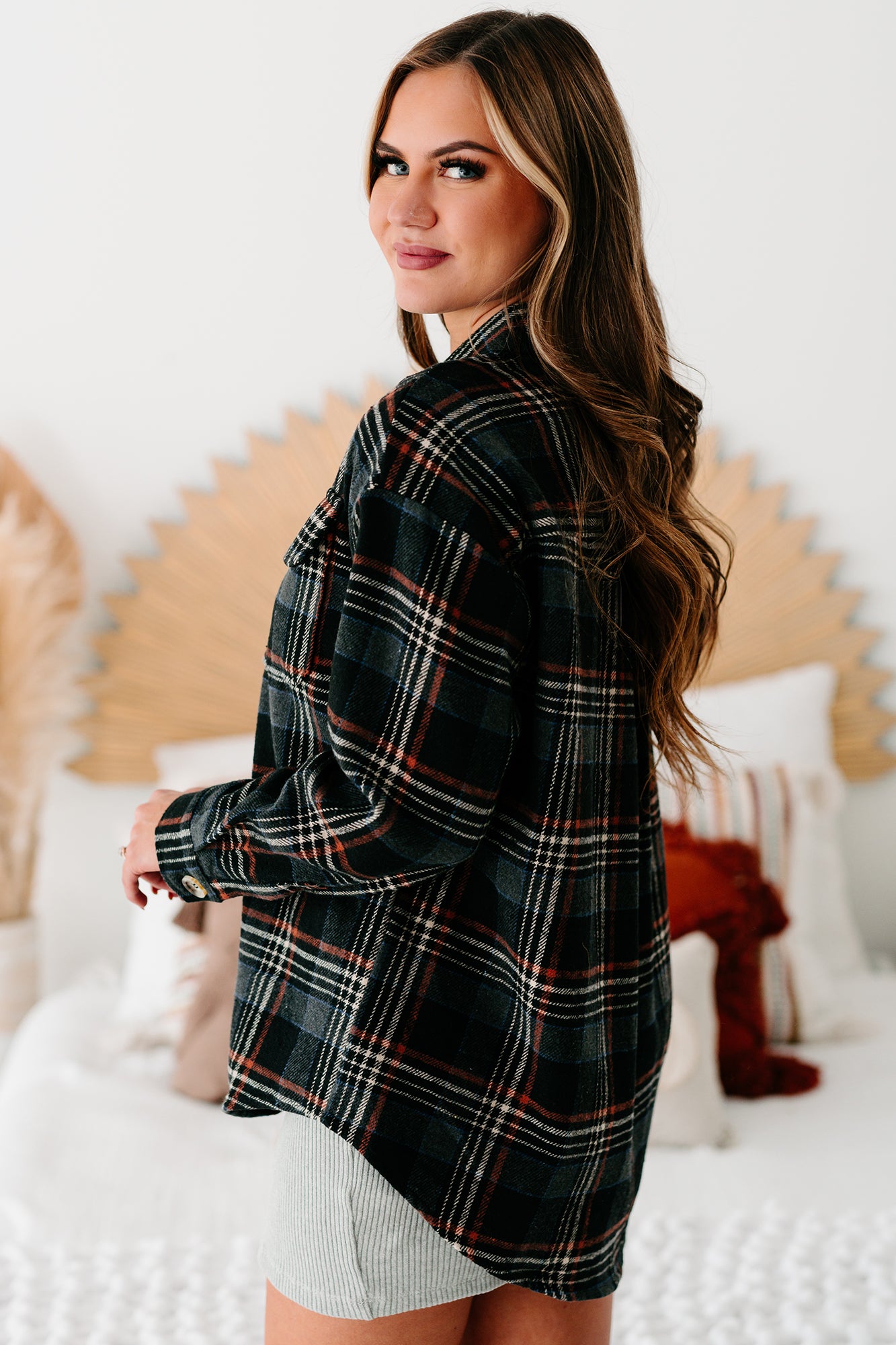 Passing Cities Plaid Shacket (Black) - NanaMacs