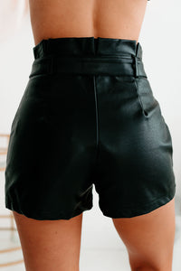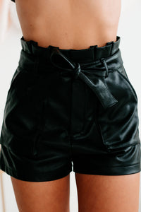 Passionate Pursuits Faux Leather Paperbag Shorts (Black)
