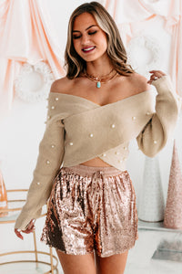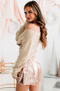 Pearl Next Door Cropped Pearl Embellished Sweater (Oatmeal)