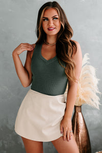 People Pleaser Ribbed V-Neck Bodysuit (Teal Green)