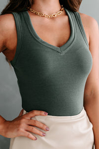 This Teal Green, Ribbed, V-Neck Bodysuit Is A Must Have Basic!
