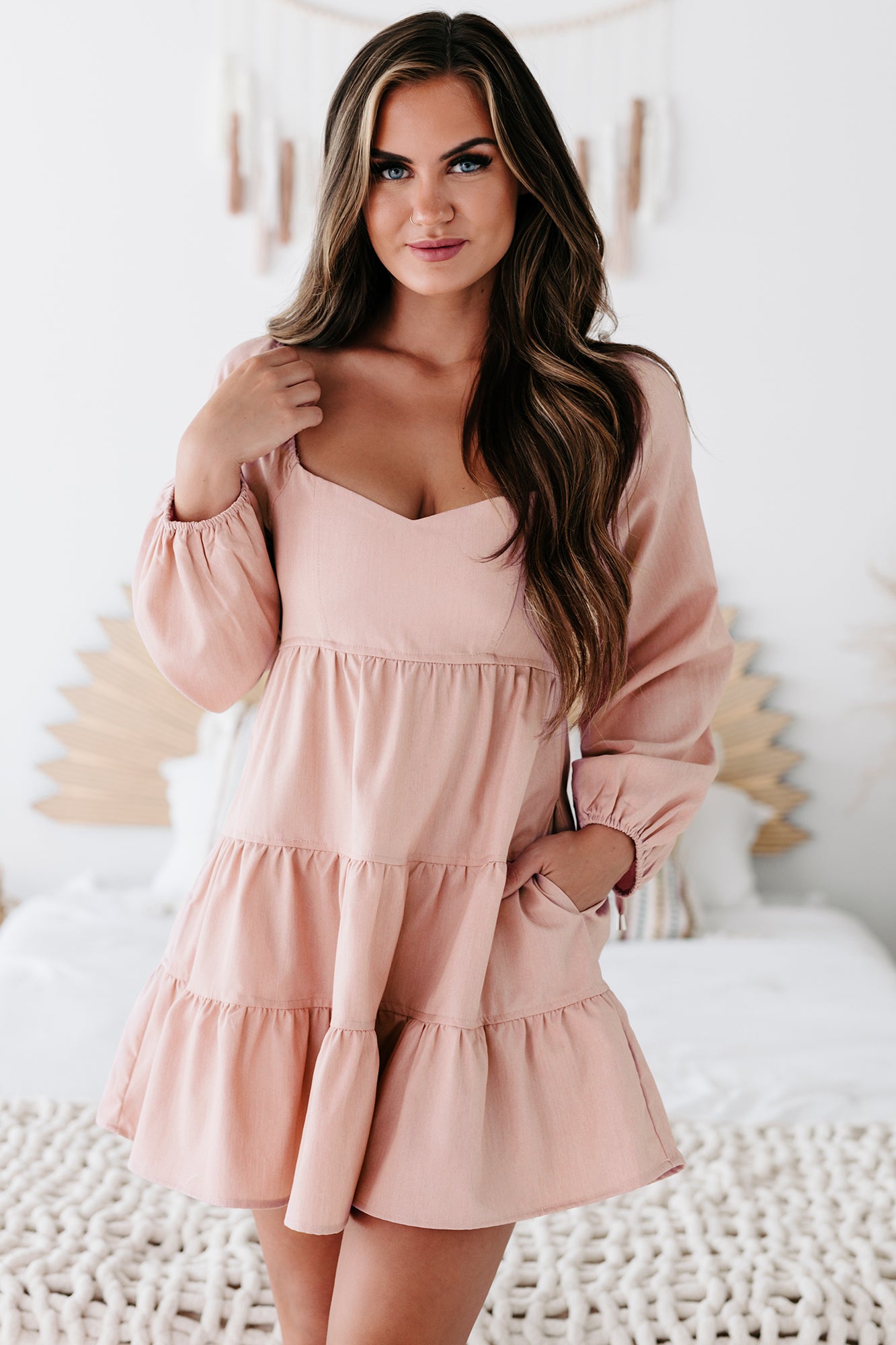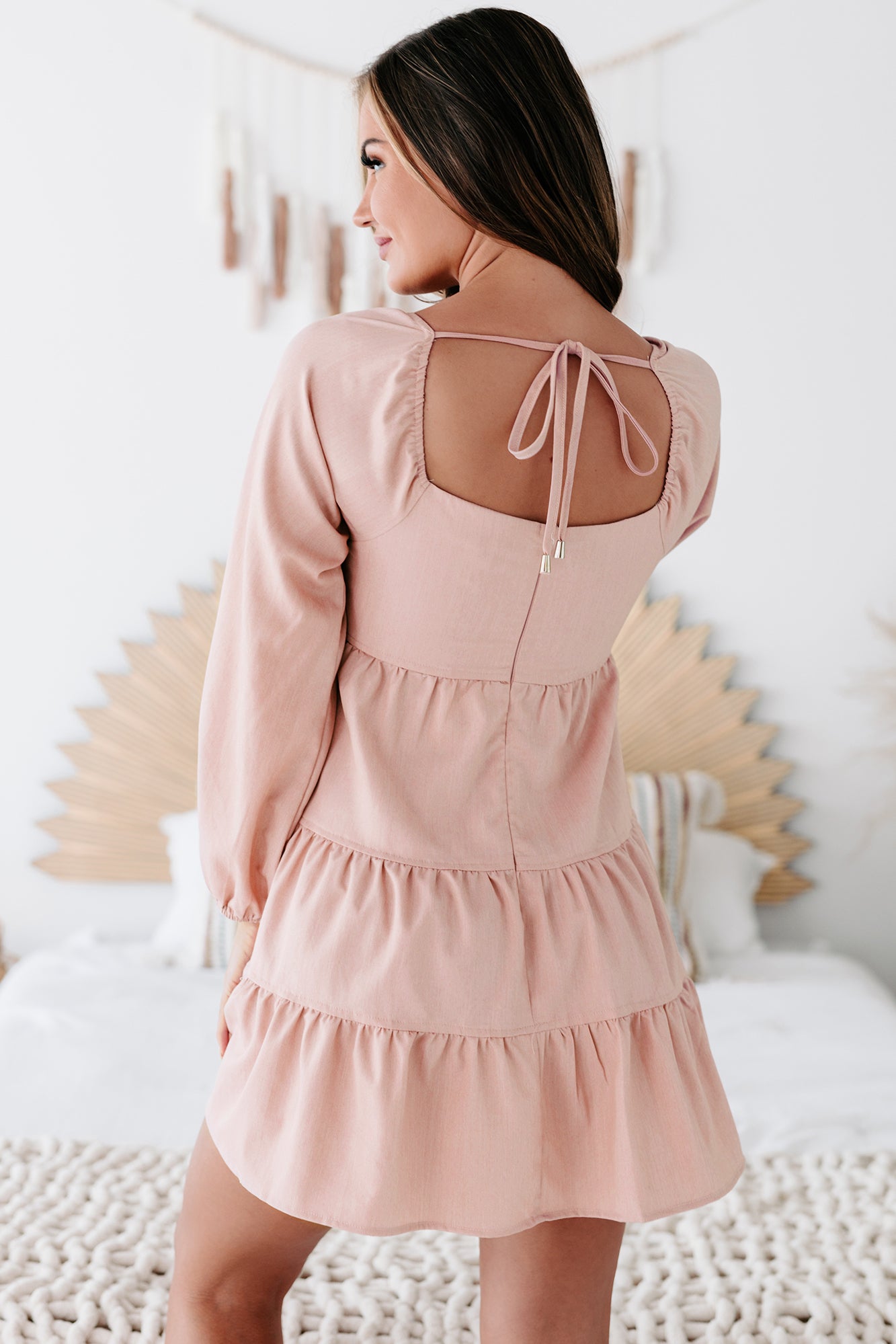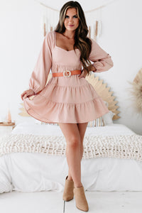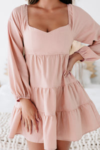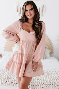 Perfect Perception Tiered Long Sleeve Mini Dress (Pink Bell) - NanaMacs