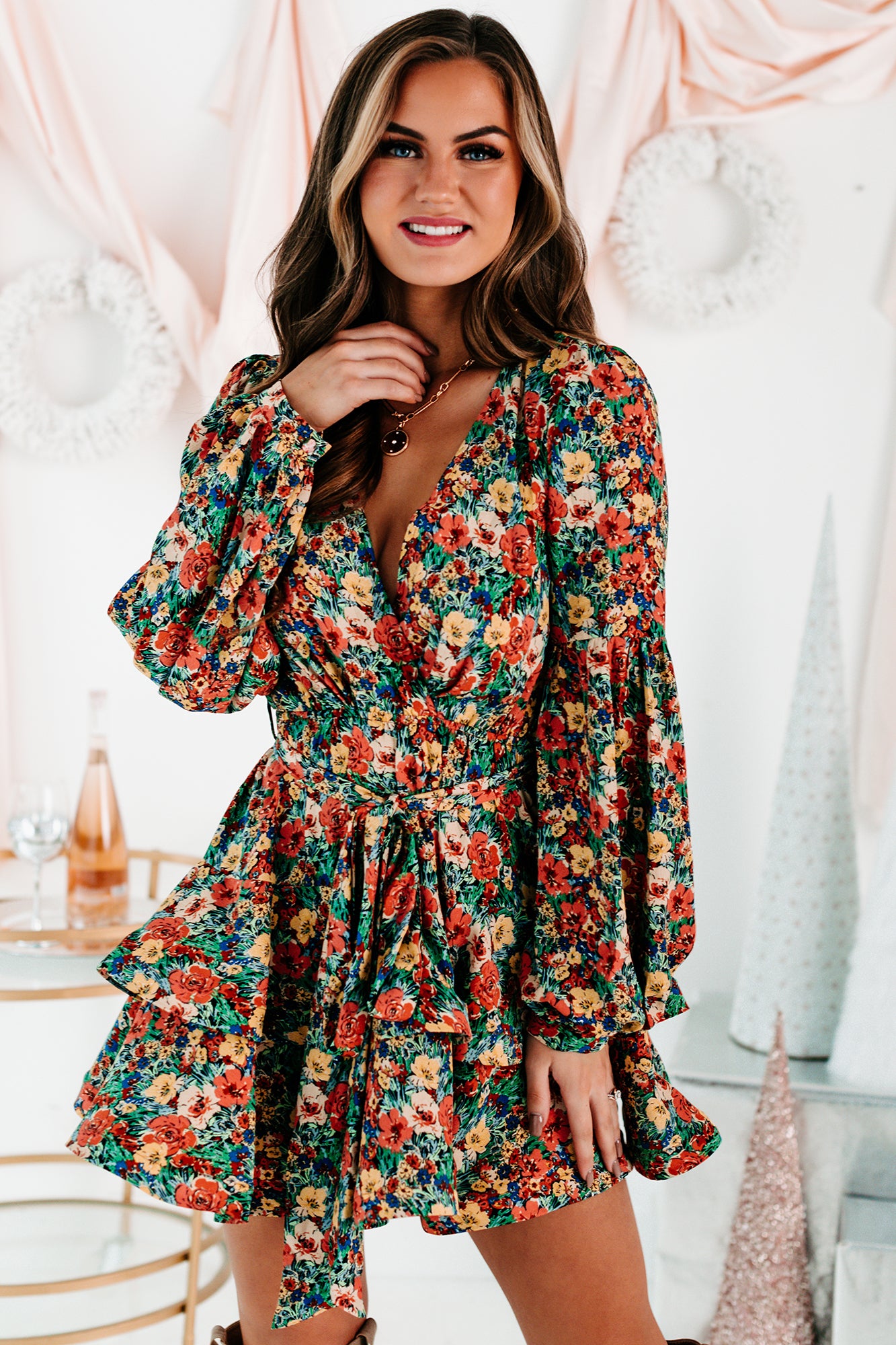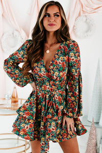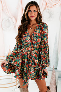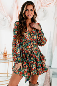 Catch All The Attention With This Green Multi, Floral Mini Dress! The Tiered, Ruffled Hem Is So Fun & Flirty!