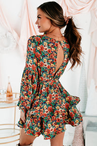 Planting Roots Ruffled Floral Mini Dress (Green Multi)