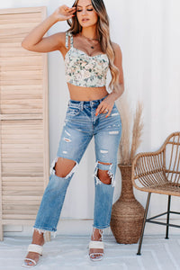 Playfully Sweet Padded Floral Crop Top (Sage) - NanaMacs