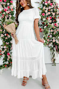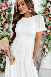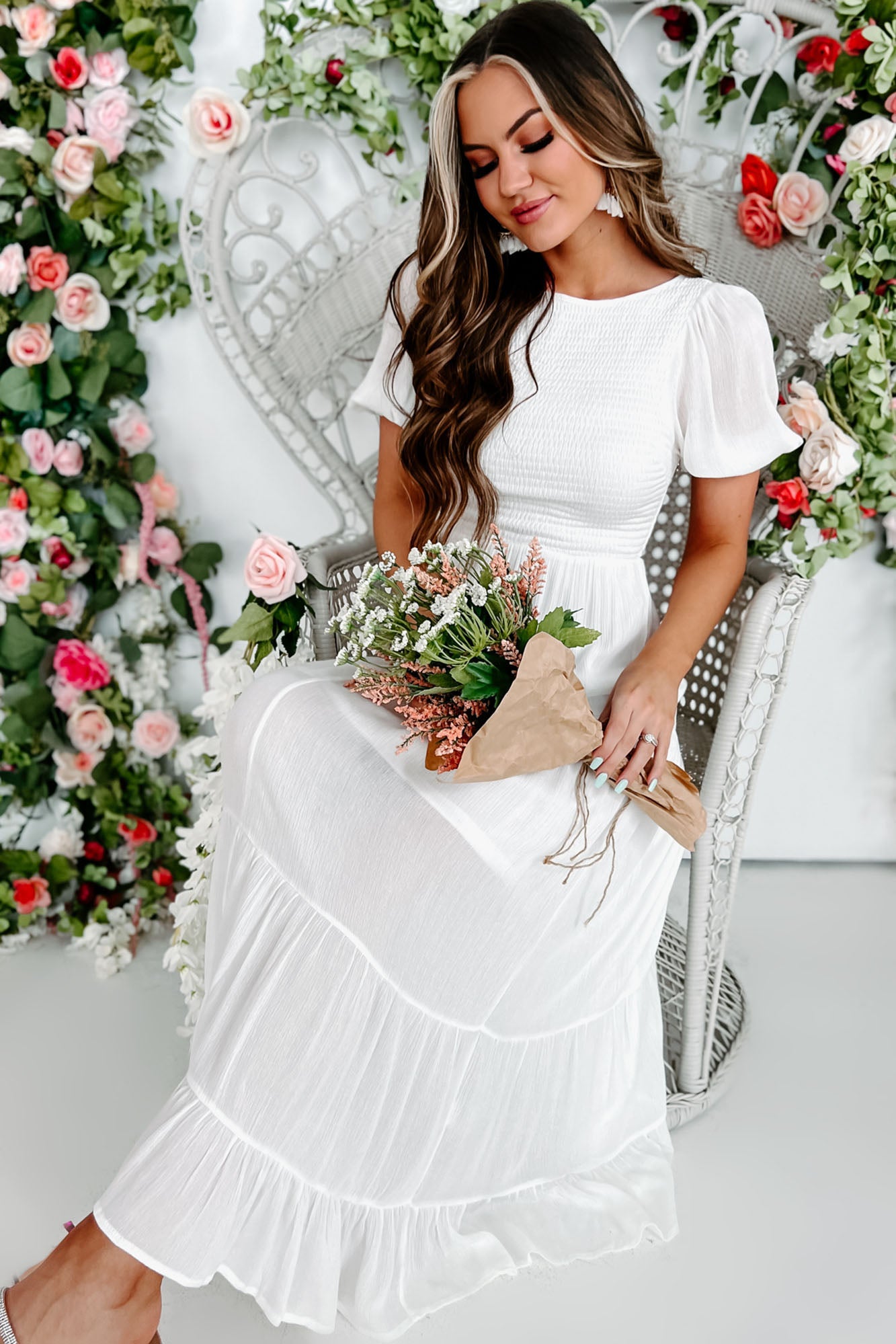 Poetic Poise Smocked Midi Dress (Off White) - NanaMacs
