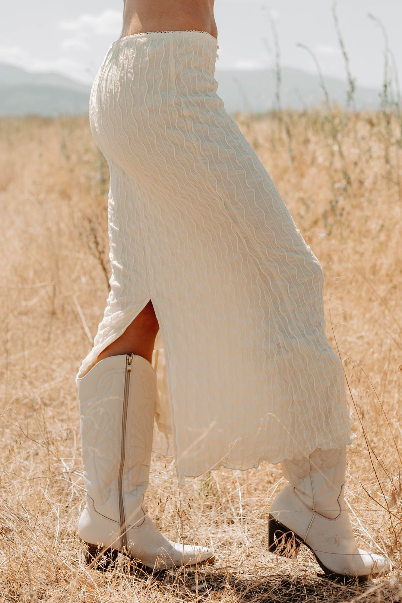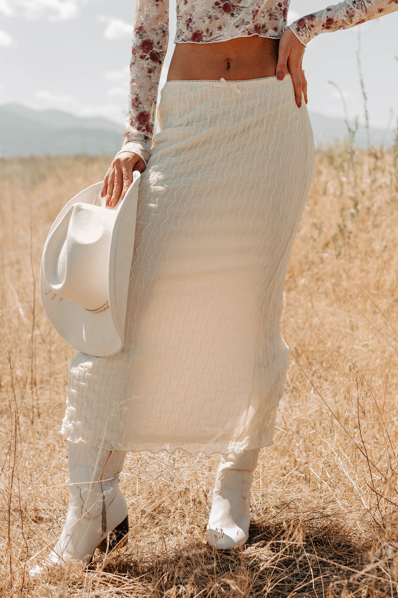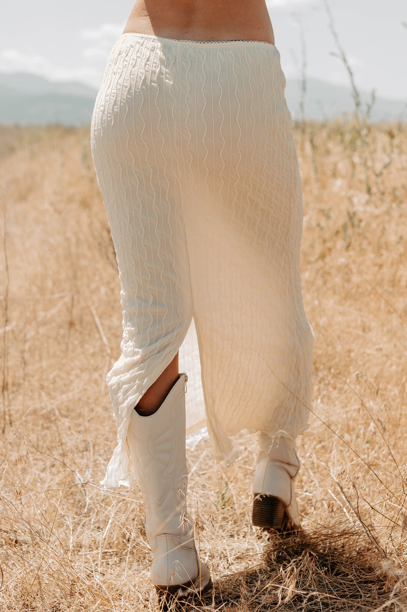 Polished Ease Textured Lace Maxi Skirt (Ivory)