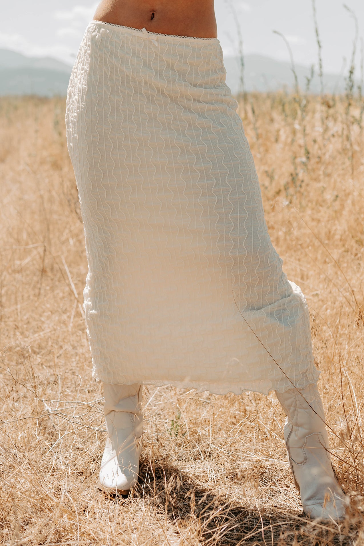 Polished Ease Textured Lace Maxi Skirt (Ivory) - NanaMacs