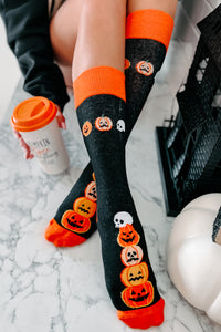 Pumpkin Pyramid Halloween Novelty Socks (Black) - NanaMacs