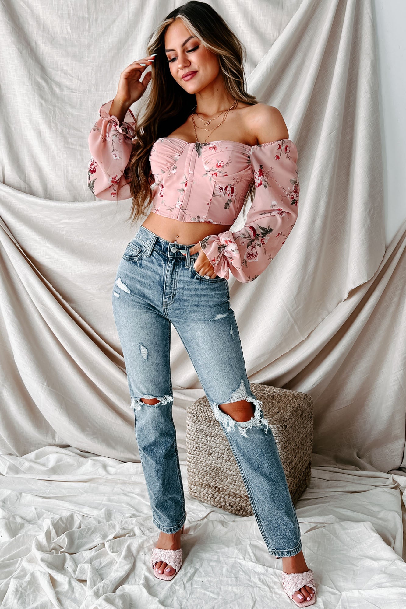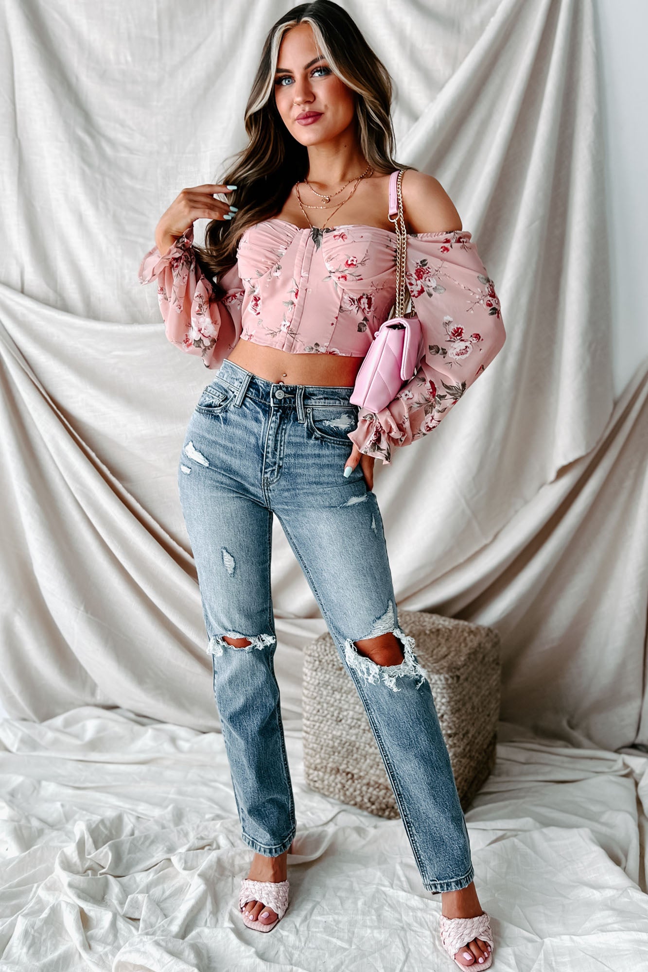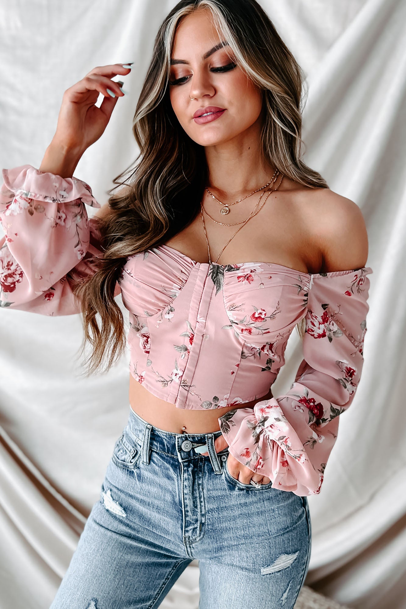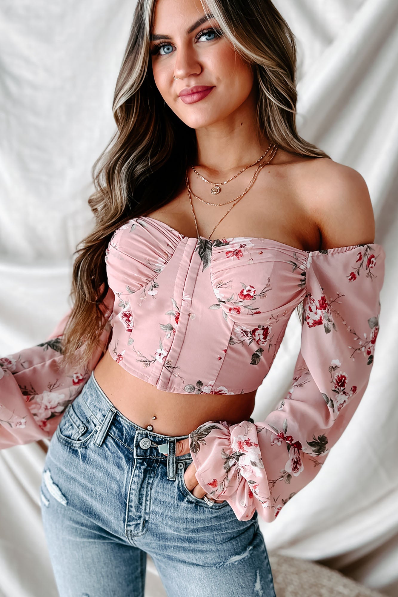 Pure Perfection Floral Bustier Crop Top (Pink) - NanaMacs