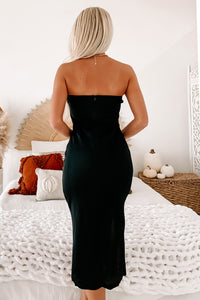 Queen Moment Strapless Front-Slit Button Detail Bodycon (Black) - NanaMacs