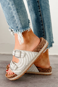 Radiant Charm Pearl Buckle Strap Sandals (White)