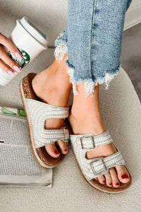 Radiant Charm Pearl Buckle Strap Sandals (White) - NanaMacs
