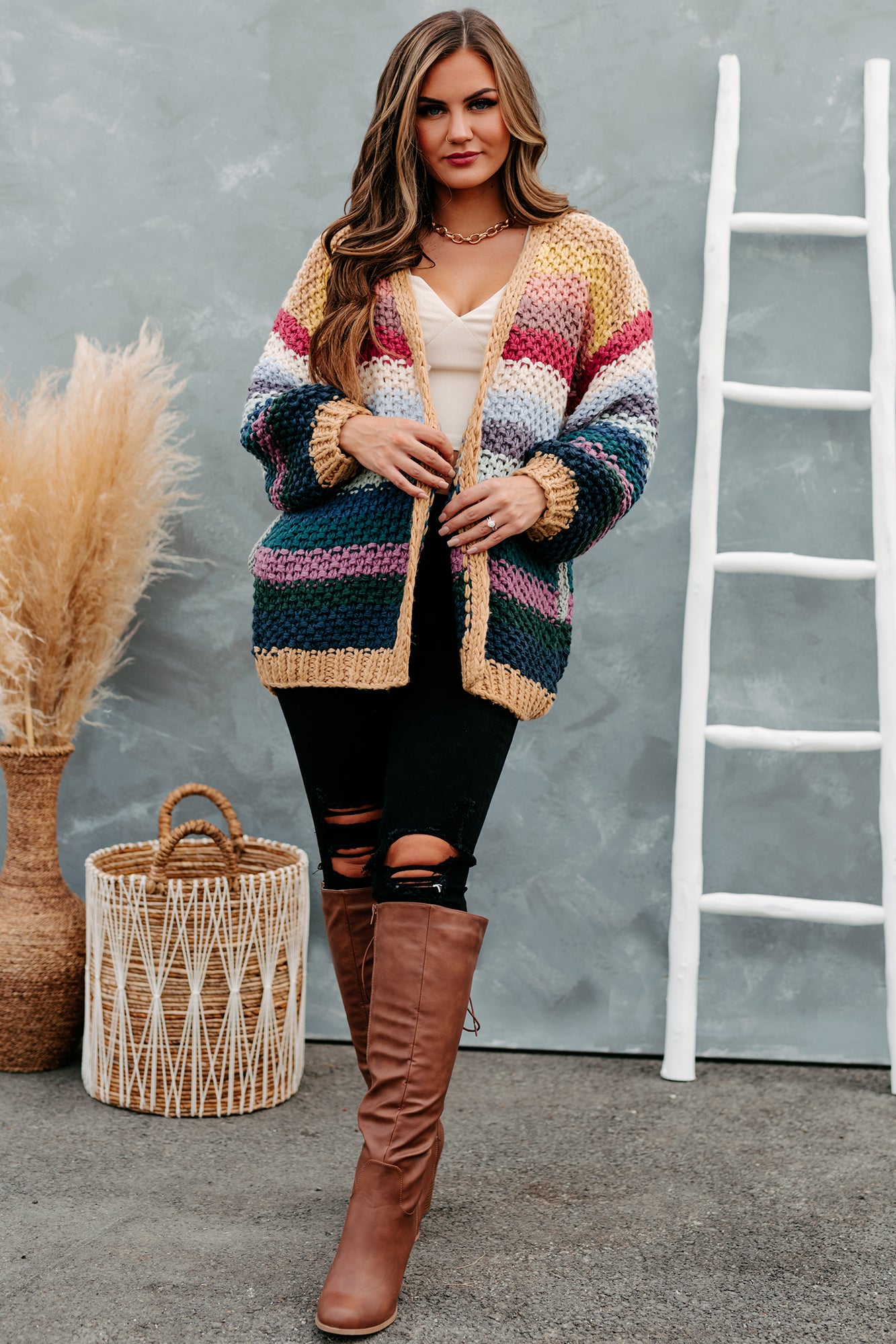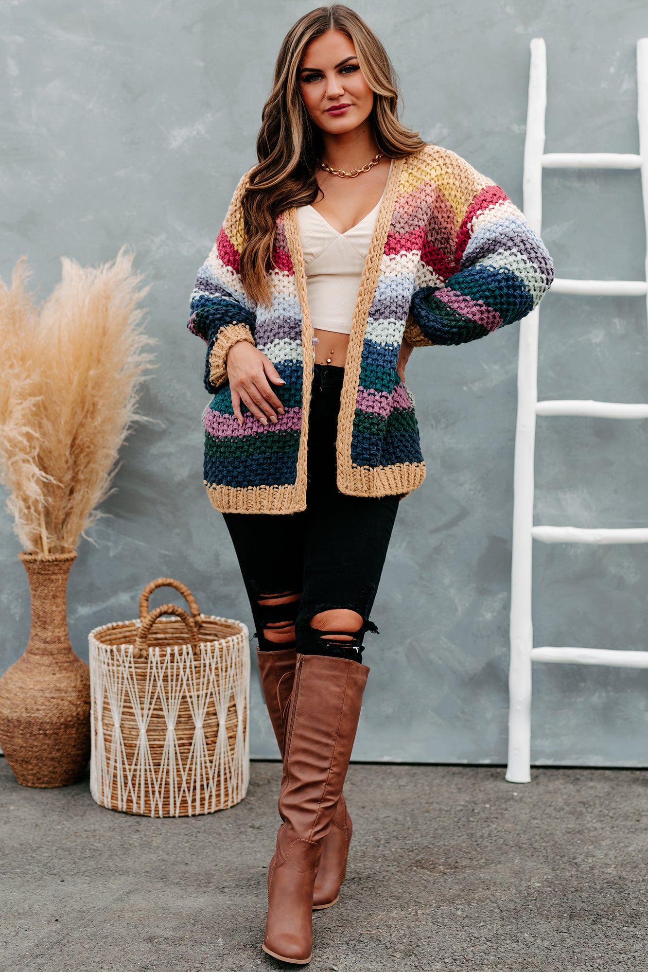 Rainbow Reveal Crochet Knit Cardigan (Neutral Multi)